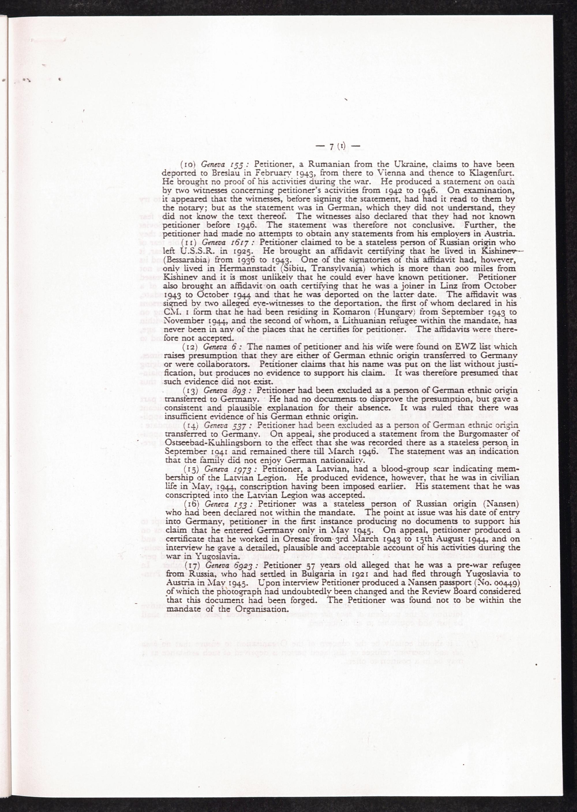Manual for Eligibility Officers / International Refugee Organization