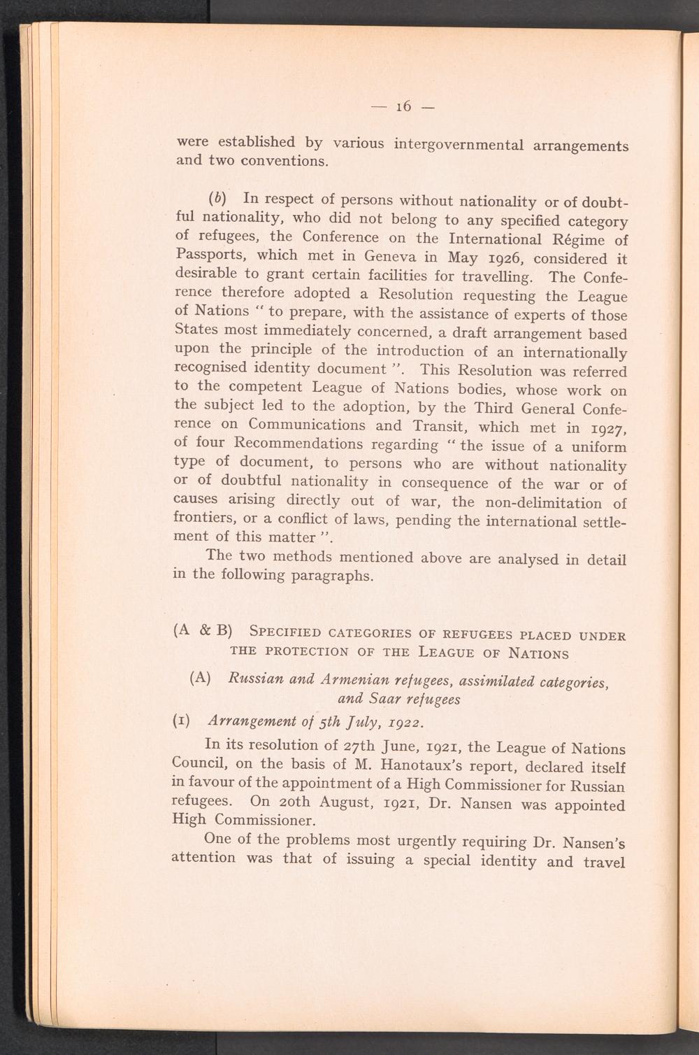 PDF  Section I Historical survey and analysis of international action previously taken in connection with the issue of an identity and travel document to refugees or to persons without nationality or doubtful nationality.