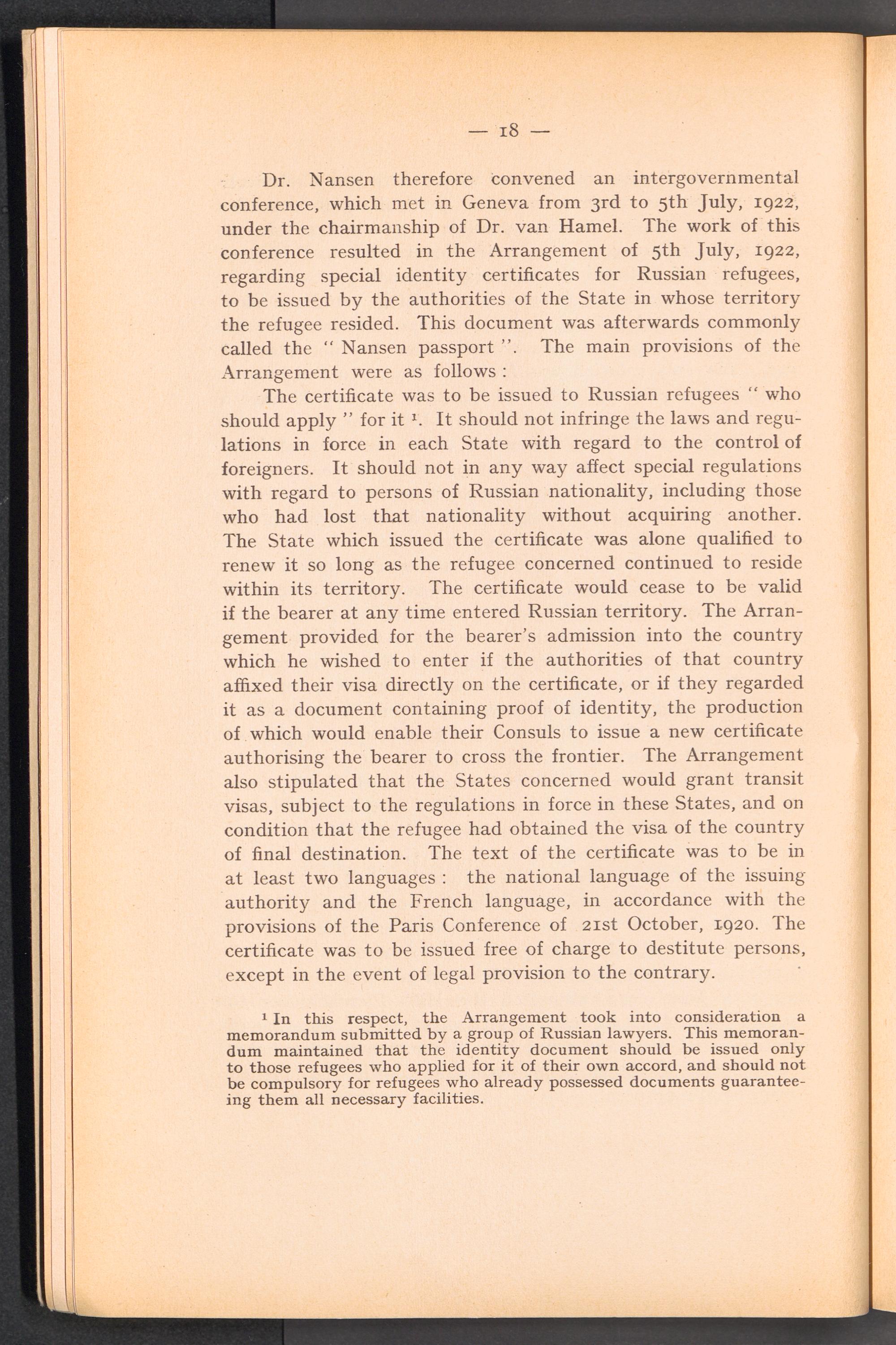 PDF  Section I Historical survey and analysis of international action previously taken in connection with the issue of an identity and travel document to refugees or to persons without nationality or doubtful nationality.