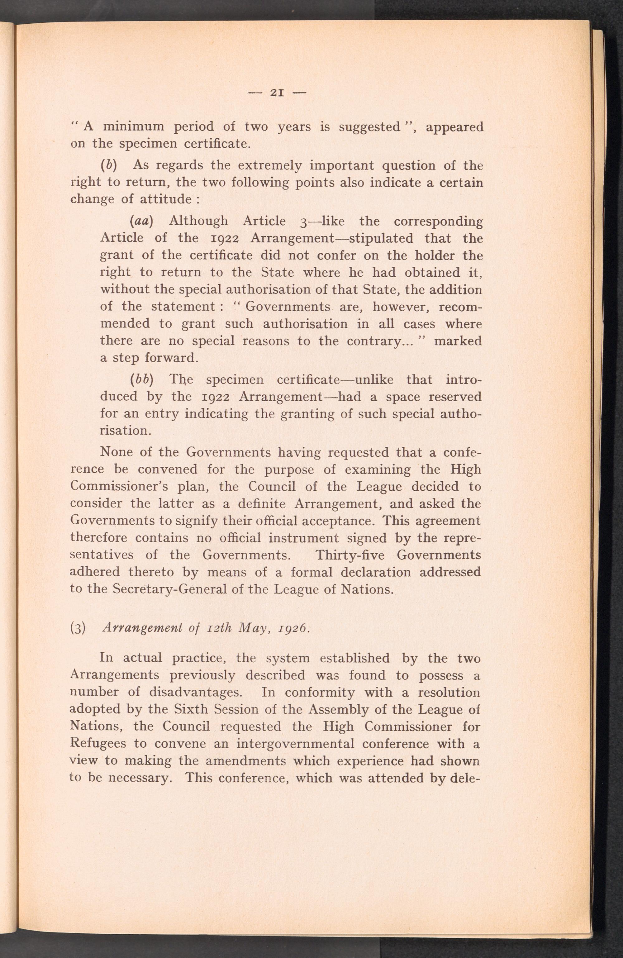 PDF  Section II Study of the various questions relating to the adoption of an identity and travel document for refugees coming within the mandate of the Intergouvernmental Commitee.