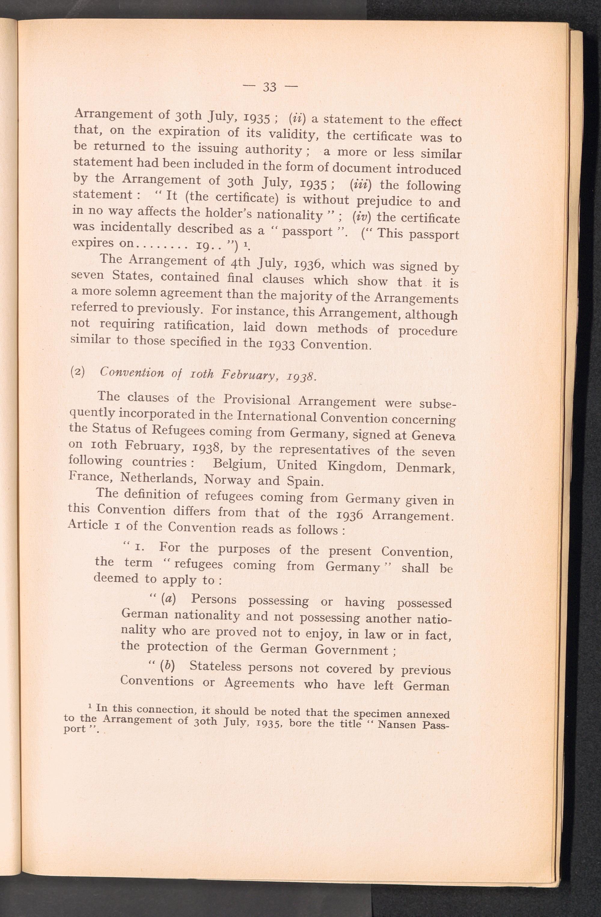 PDF  Section II Study of the various questions relating to the adoption of an identity and travel document for refugees coming within the mandate of the Intergouvernmental Commitee.