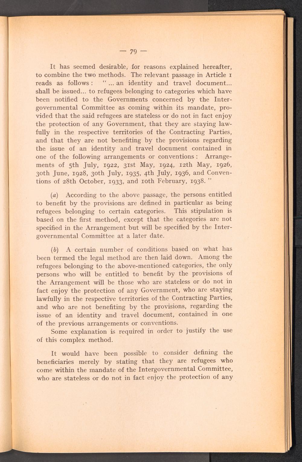 PDF  Section II Study of the various questions relating to the adoption of an identity and travel document for refugees coming within the mandate of the Intergouvernmental Commitee.