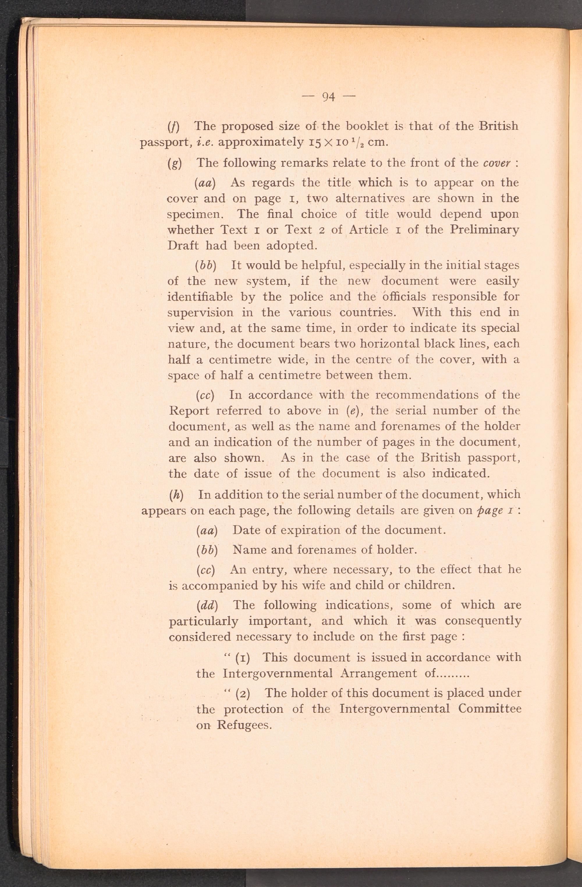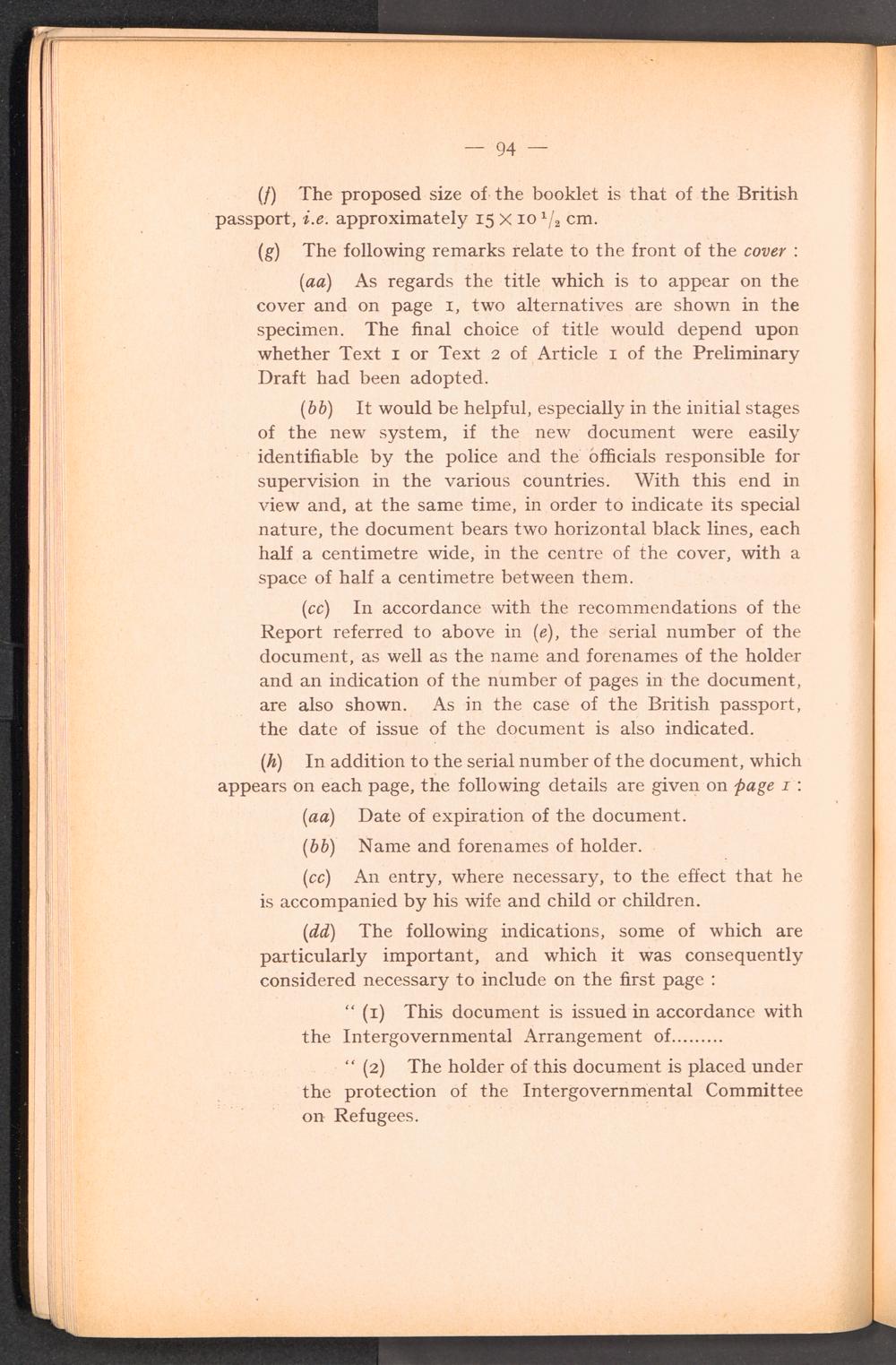 PDF  Section II Study of the various questions relating to the adoption of an identity and travel document for refugees coming within the mandate of the Intergouvernmental Commitee.