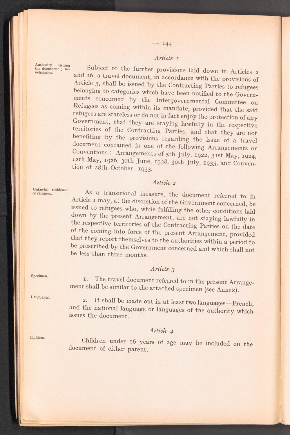 Preparatory documents concerning the adoption of an identity and travel document for refugees coming within the mandate of the Intergovernmental Committee / Intergovernmental Committee on Refugees