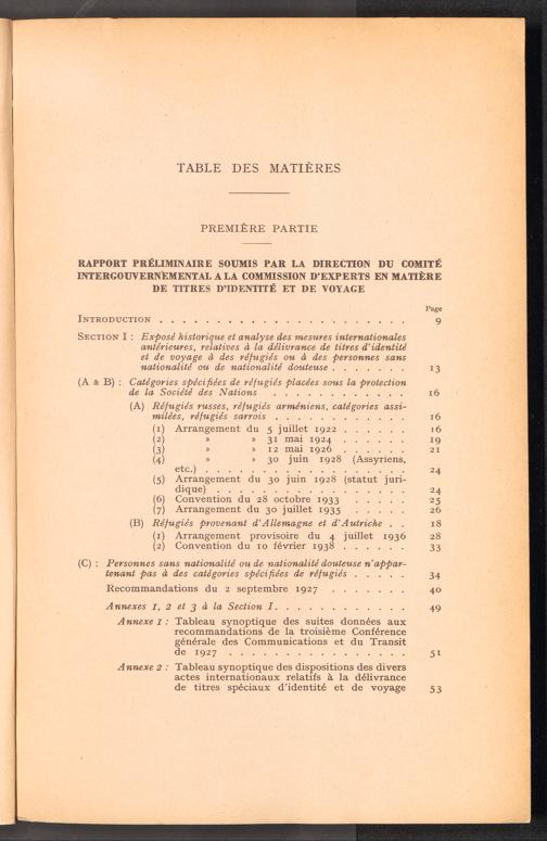 Documents préparatoires relatifs à l ' adoption d ' un titre d ' identité et de voyage... Table des matières