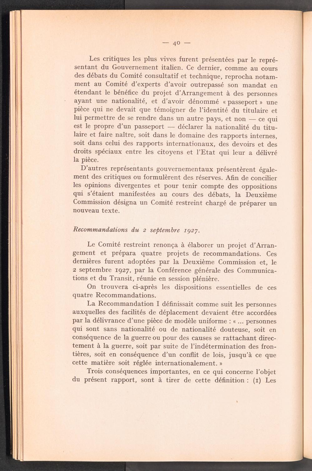 Documents préparatoires relatifs à l ' adoption d ' un titre d ' identité et de voyage pour des réfugiés relevant de la compétence du Comité Intergouvernemental / Intergovernmental Committee on Refugees