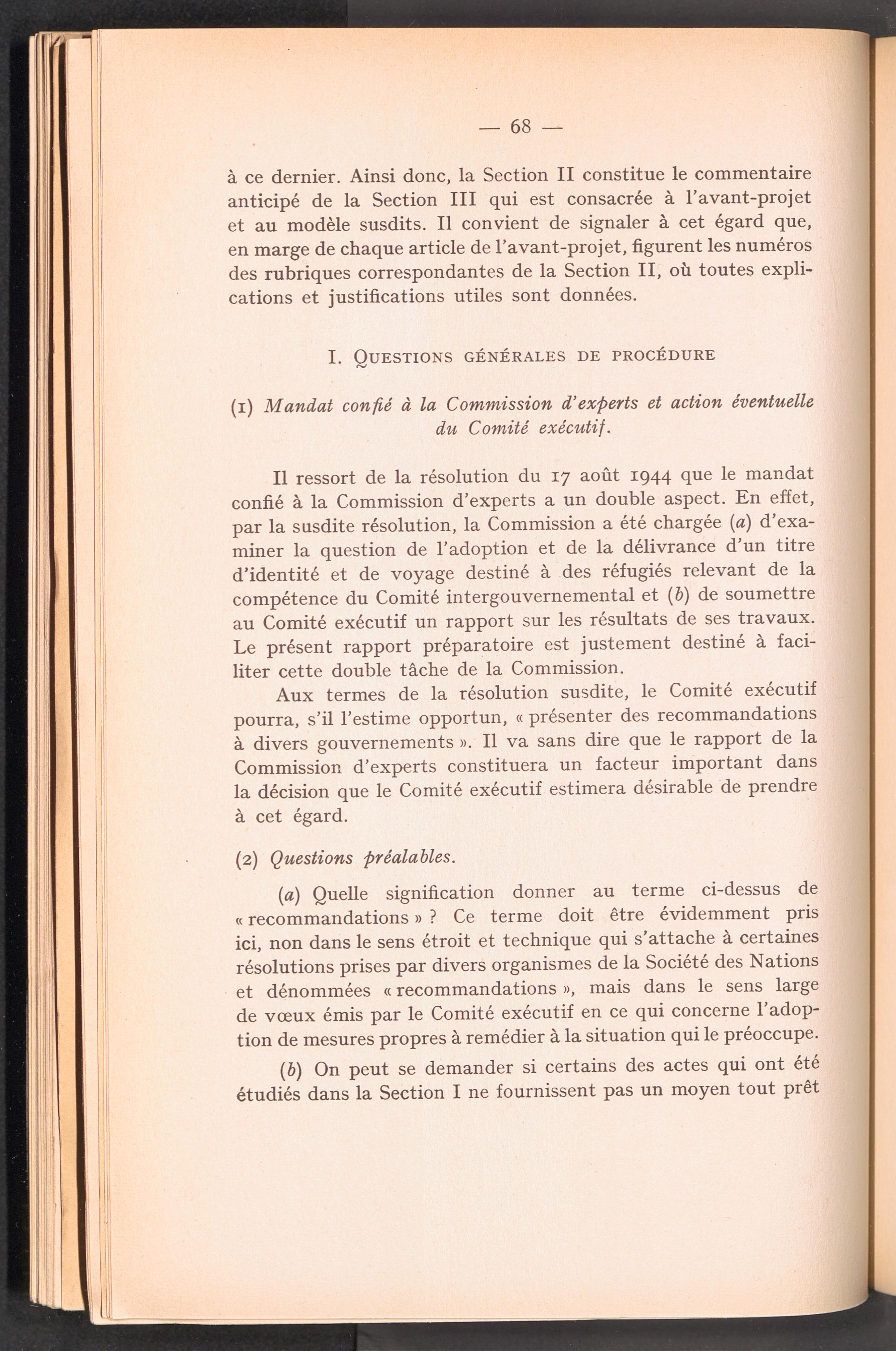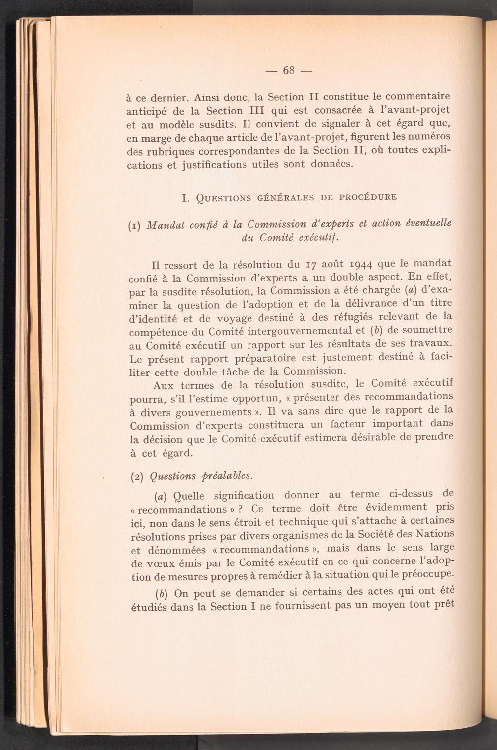 Documents préparatoires relatifs à l ' adoption d ' un titre d ' identité et de voyage pour des réfugiés relevant de la compétence du Comité Intergouvernemental / Intergovernmental Committee on Refugees