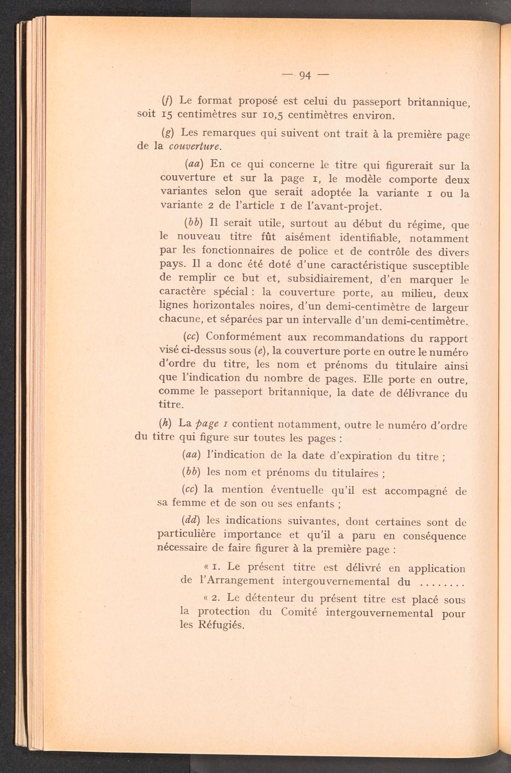 Documents préparatoires relatifs à l ' adoption d ' un titre d ' identité et de voyage pour des réfugiés relevant de la compétence du Comité Intergouvernemental / Intergovernmental Committee on Refugees