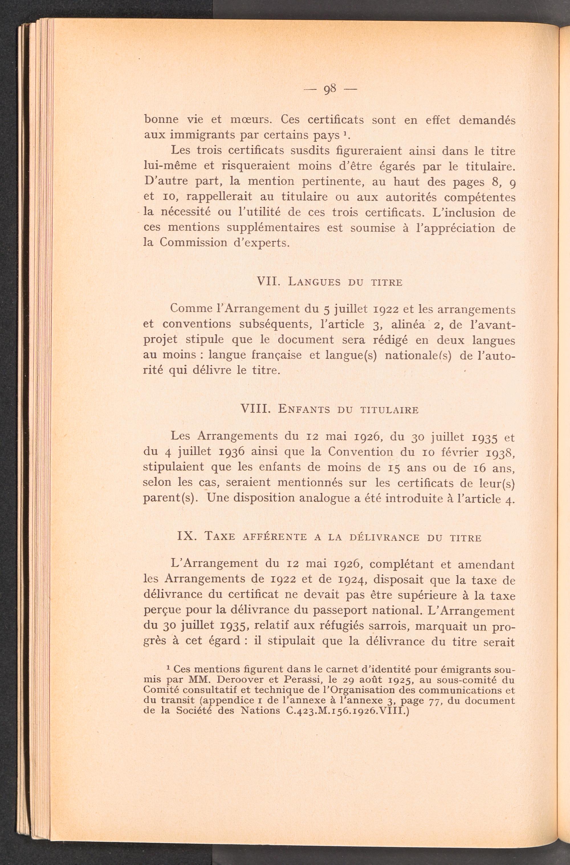 Documents préparatoires relatifs à l ' adoption d ' un titre d ' identité et de voyage pour des réfugiés relevant de la compétence du Comité Intergouvernemental / Intergovernmental Committee on Refugees