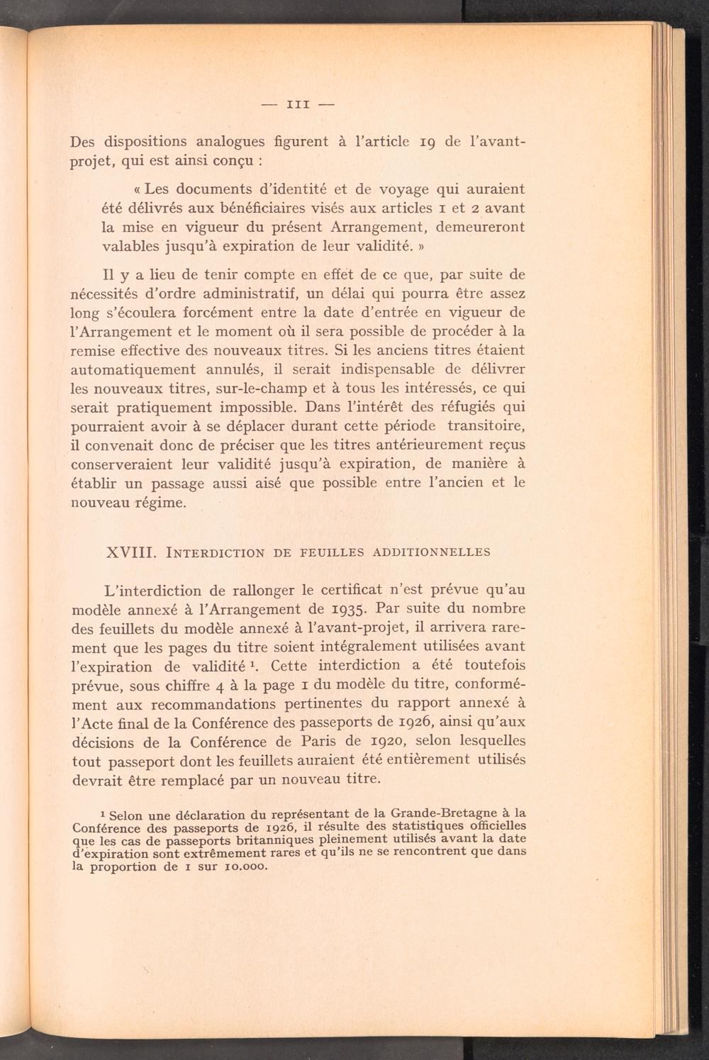 Documents préparatoires relatifs à l ' adoption d ' un titre d ' identité et de voyage pour des réfugiés relevant de la compétence du Comité Intergouvernemental / Intergovernmental Committee on Refugees