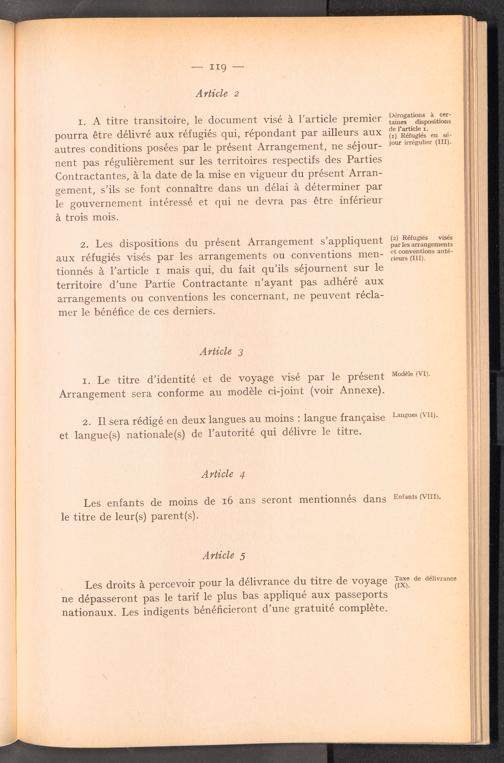 Documents préparatoires relatifs à l ' adoption d ' un titre d ' identité et de voyage pour des réfugiés relevant de la compétence du Comité Intergouvernemental / Intergovernmental Committee on Refugees