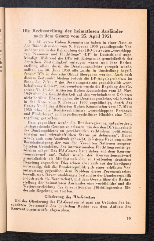 Der Ratgeber für heimatlose Ausländer und sonstige ausländische Flüchtlinge : Rechte und Pflichten nach der Internationalen Konvention über die Rechtsstellung der Flüchtlinge vom 28. Juli 1951 und dem Gesetz über die Rechtsstellung heimatloser Ausländer im Bundesgebiet vom 25. April 1951 / Bundesminister für Vertriebene, Flüchtlinge und Kriegsgeschädigte