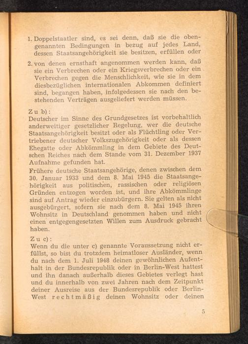 Poradnik dla obcokrajowcow pozba wionych ojczyzny / Der Ratgeber für heimatlose Ausländer : Prawa i obowiazki wedlug ustawy o polozeniu prawnym obcokrajowcow pozbawionych ojczyzny na terenie Republiki Zwiazkowej Niemiec z dnia 25 kwietnia 1951 r. / Rechte und Pflichten nach dem Gesetz über die Rechtsstellung heimatloser Ausländer im Bundesgebiet vom 25. April 1951 / Bundesminister für Vertriebene, Flüchtlinge und Kriegsgeschädigte