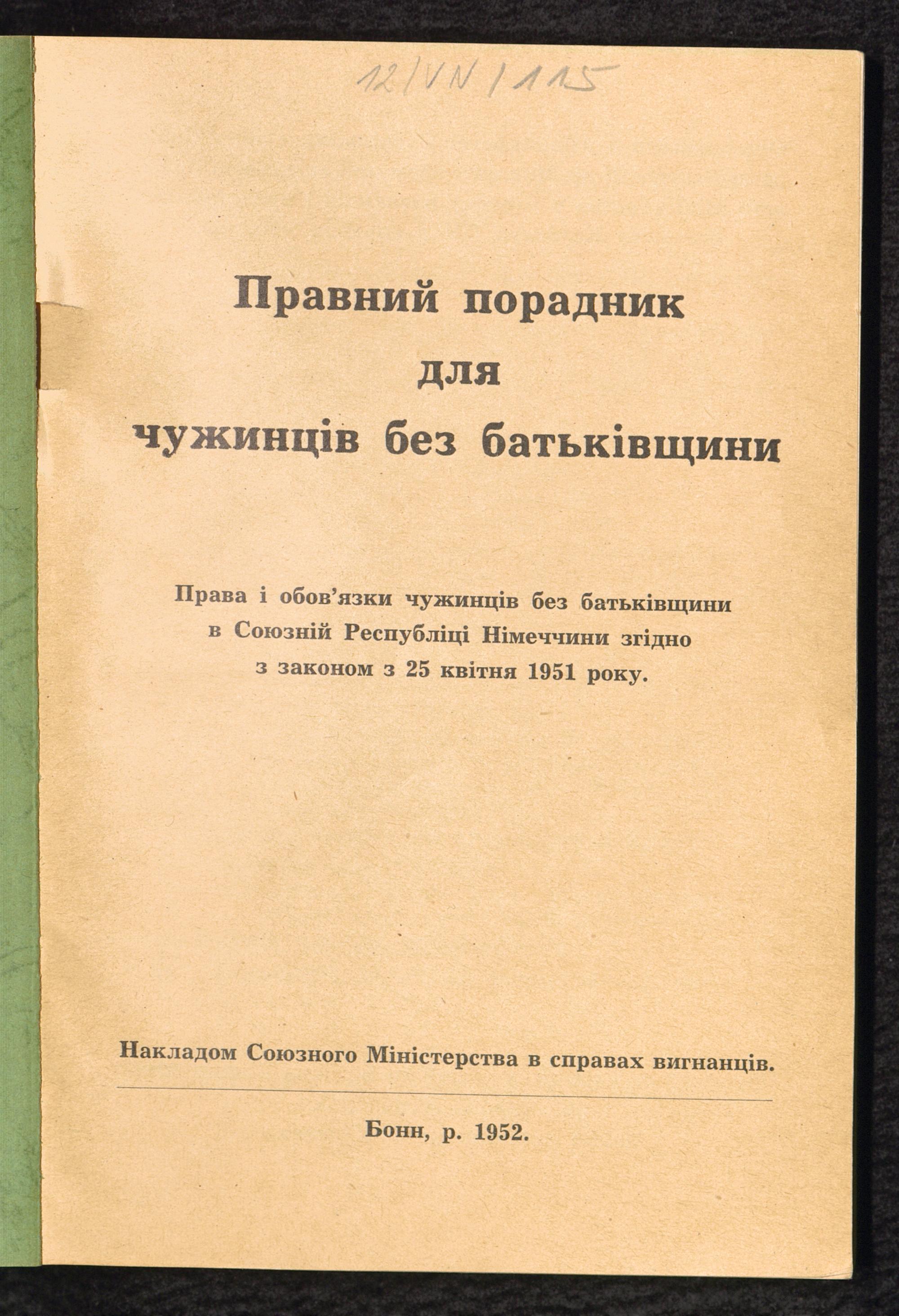 Der Ratgeber für heimatlose Ausländer und sonstige ausländische Flüchtlinge : Rechte und Pflichten nach dem Gesetz über die Rechtsstellung heimatloser Ausländer im Bundesgebiet vom 25. April 1951 / Bundesminister für Vertriebene, Flüchtlinge und Kriegsgeschädigte