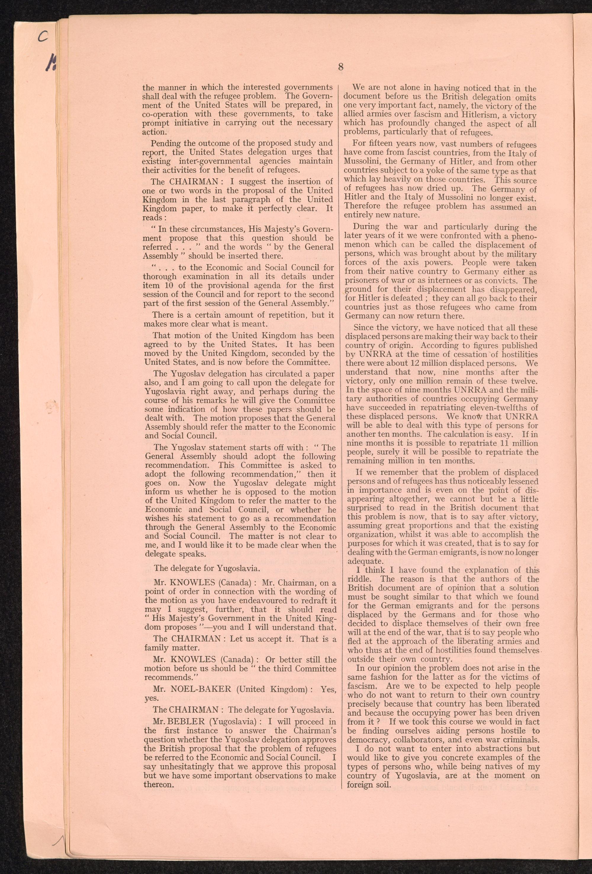 PDF 65 4. Verbatim records of the discussion which took place in the General Assembly on the report of the third Committee concerning the question of refugees.