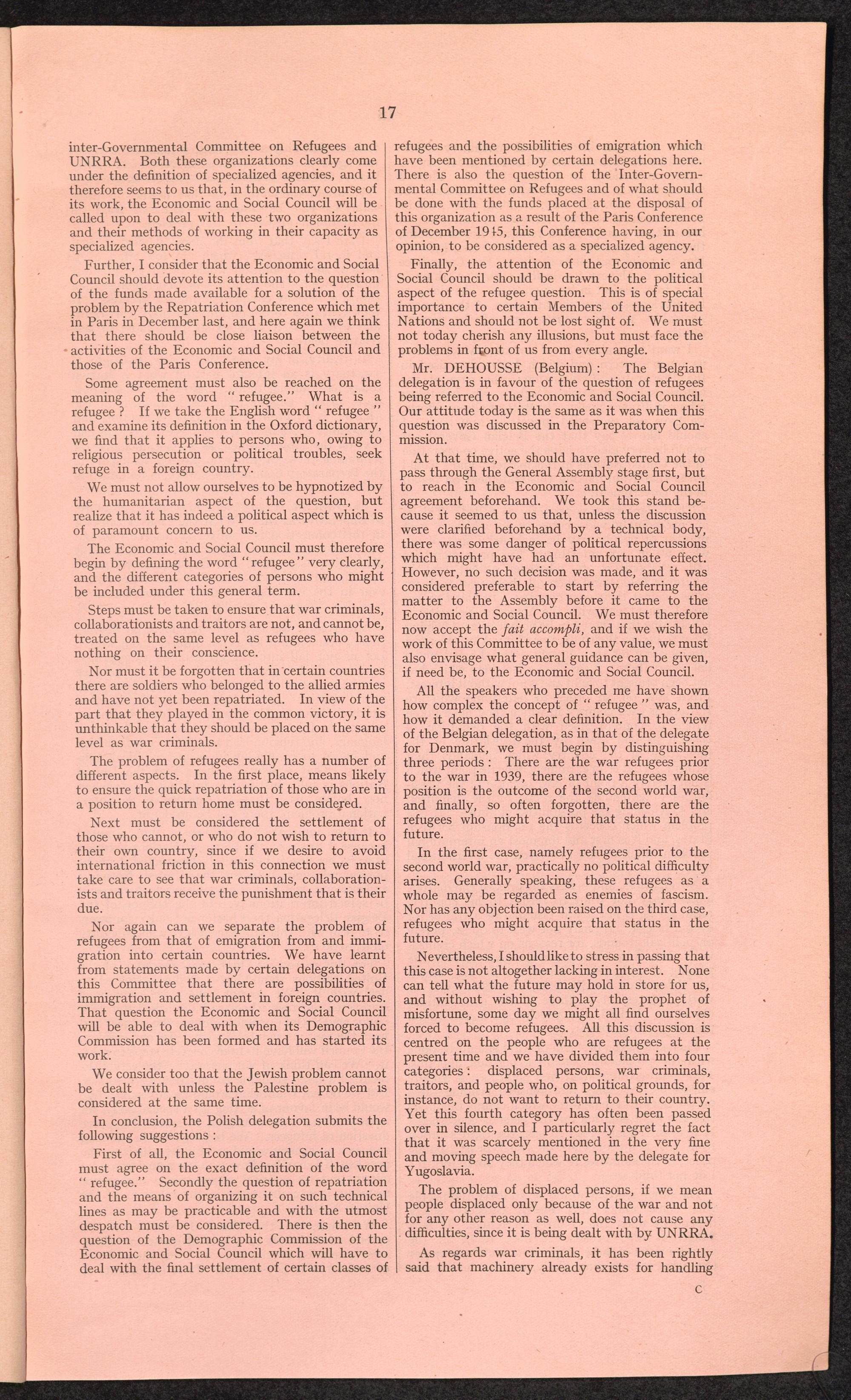 The question of refugees : Documents for the special committee on refugees and displaced persons (E/REF/1) / United Nations, Economic and Social Council