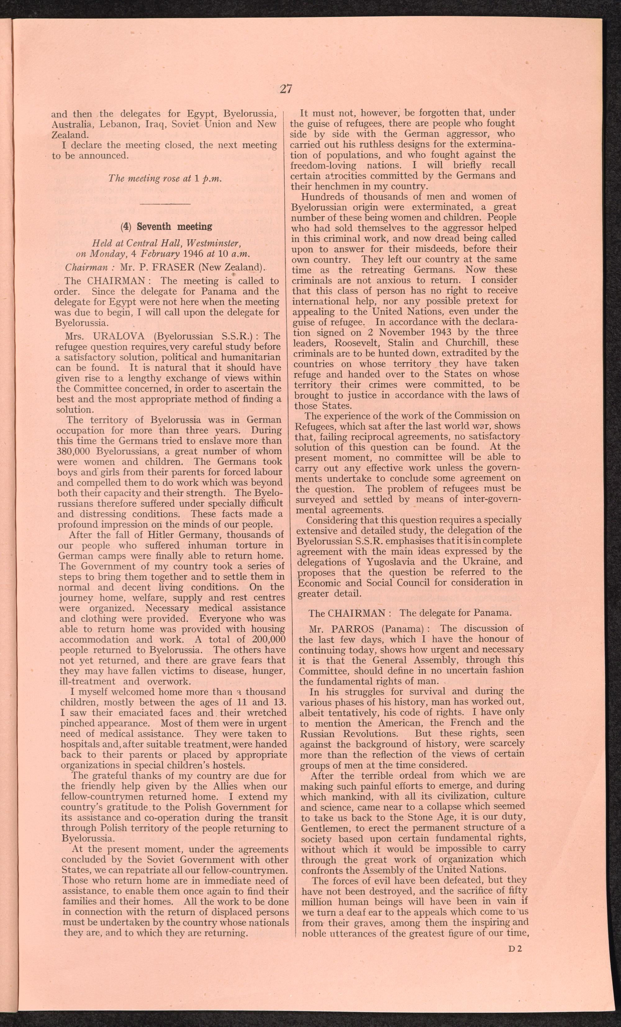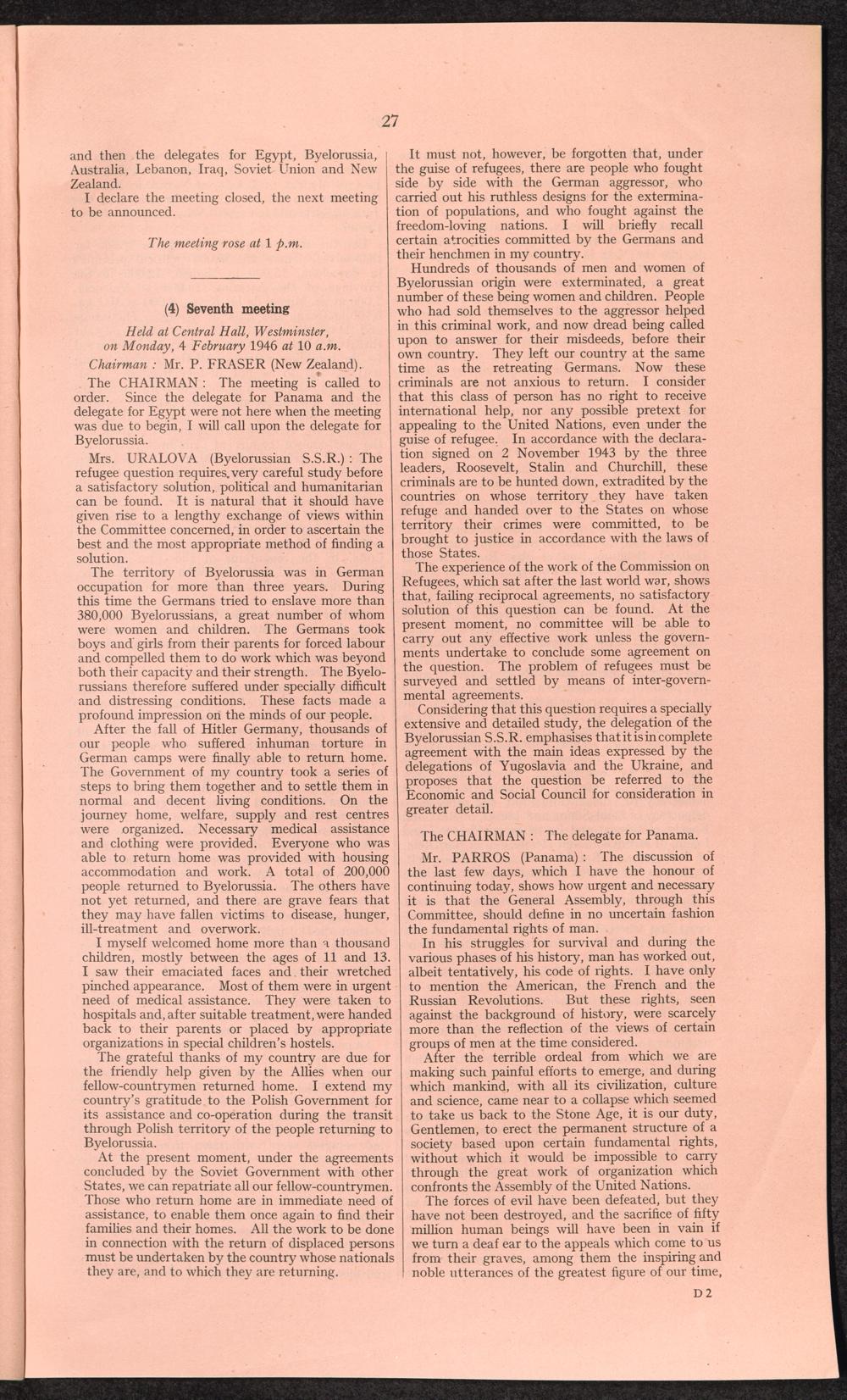 PDF 65 4. Verbatim records of the discussion which took place in the General Assembly on the report of the third Committee concerning the question of refugees.