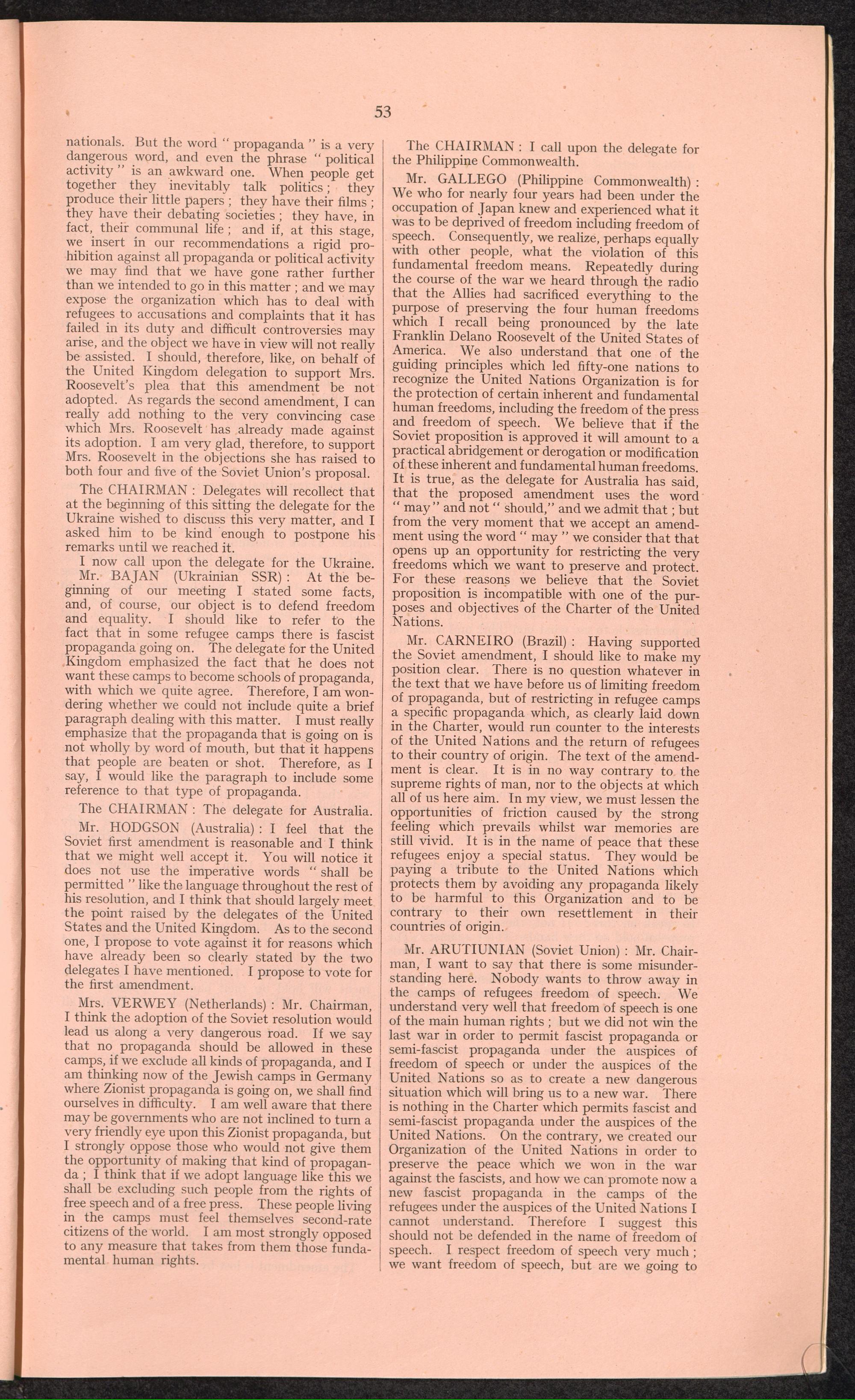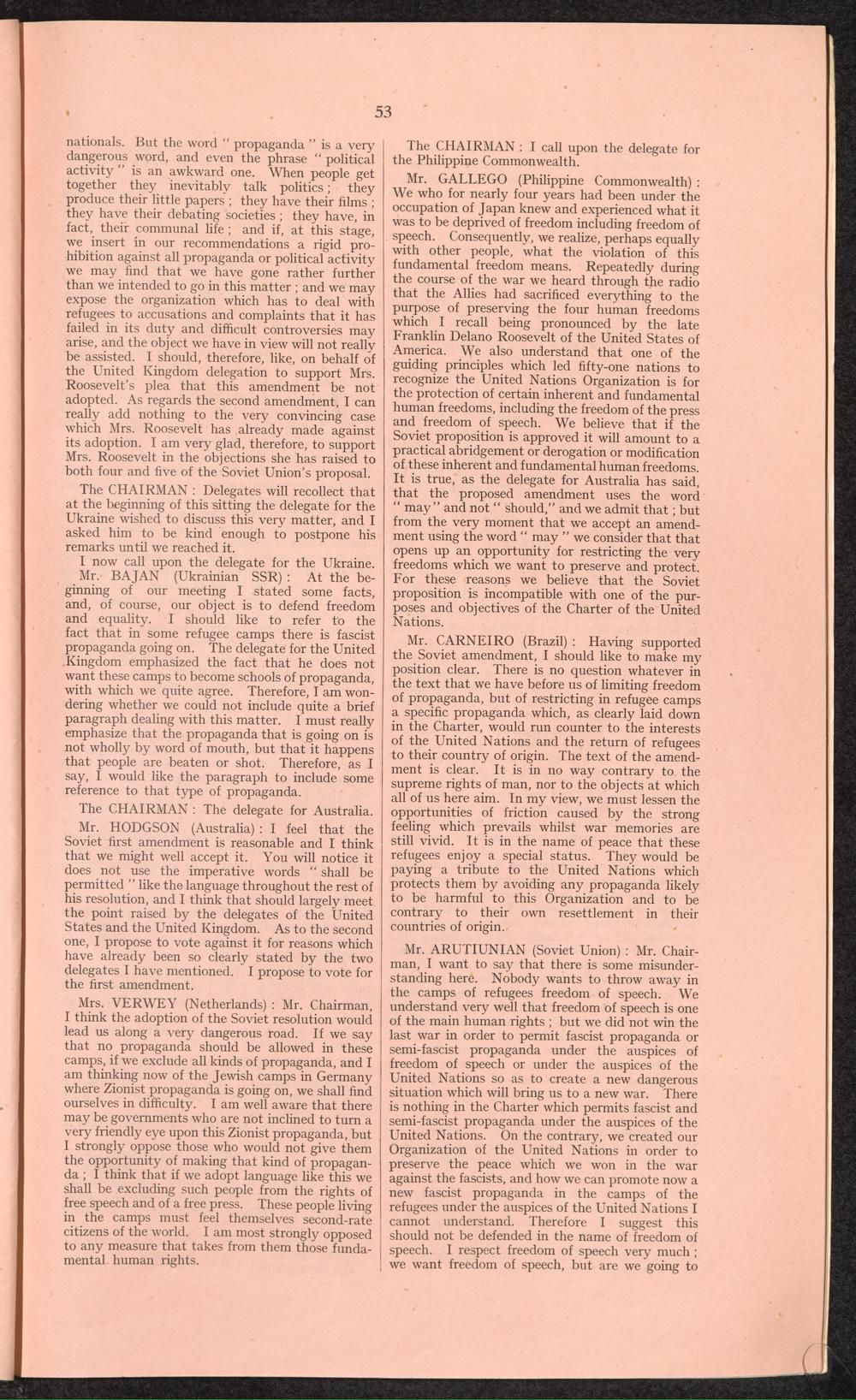 PDF 65 4. Verbatim records of the discussion which took place in the General Assembly on the report of the third Committee concerning the question of refugees.