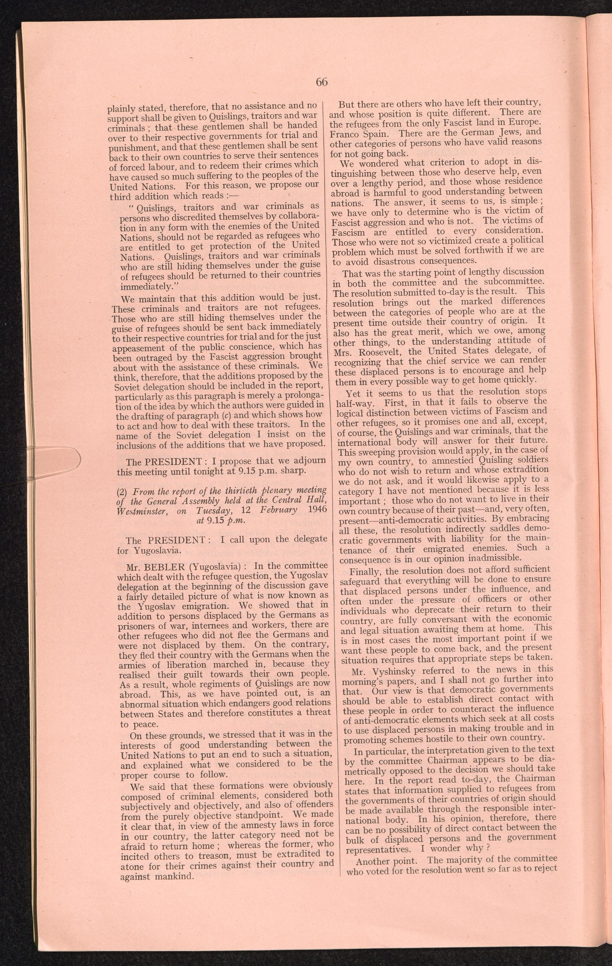 PDF 65 4. Verbatim records of the discussion which took place in the General Assembly on the report of the third Committee concerning the question of refugees.