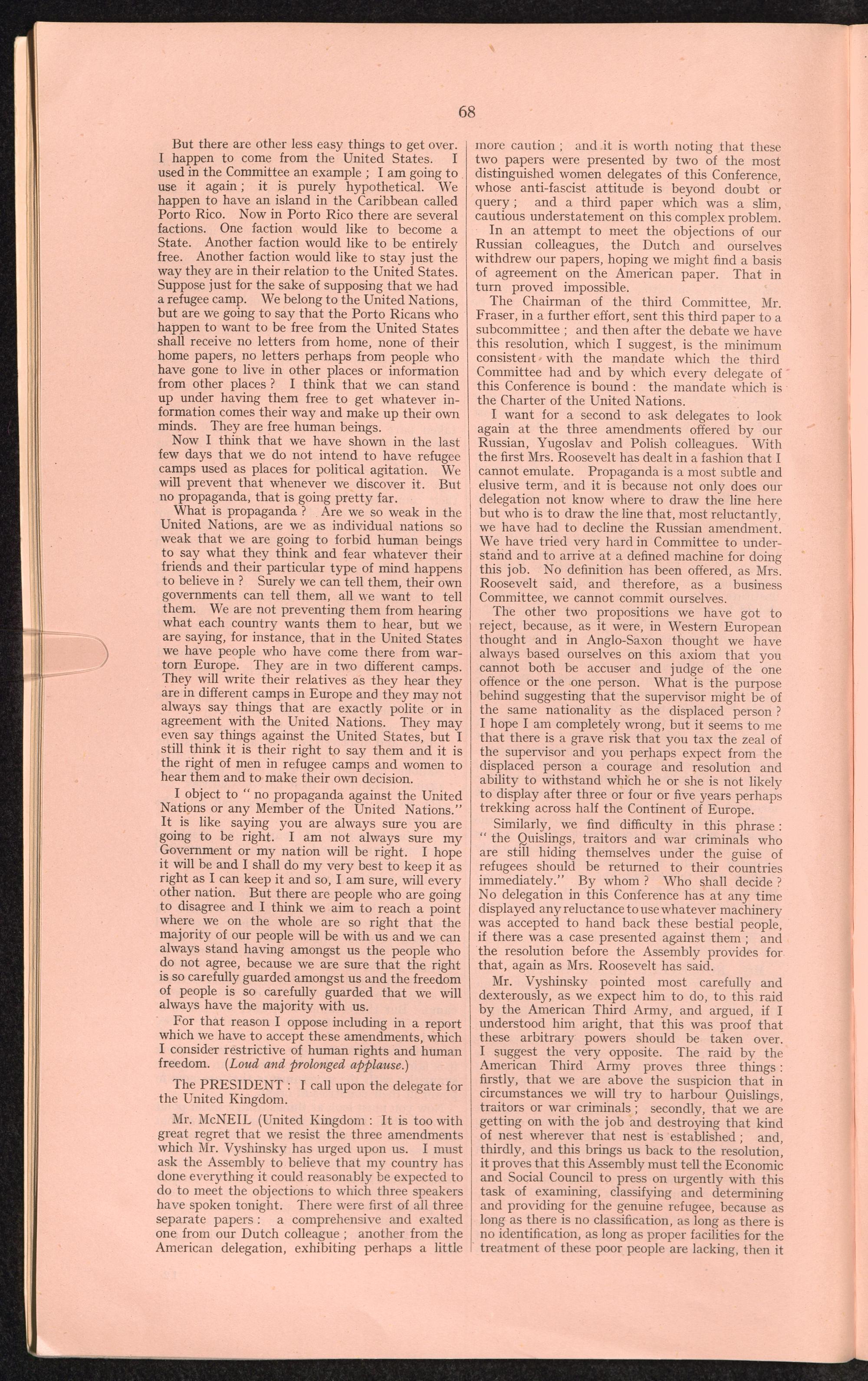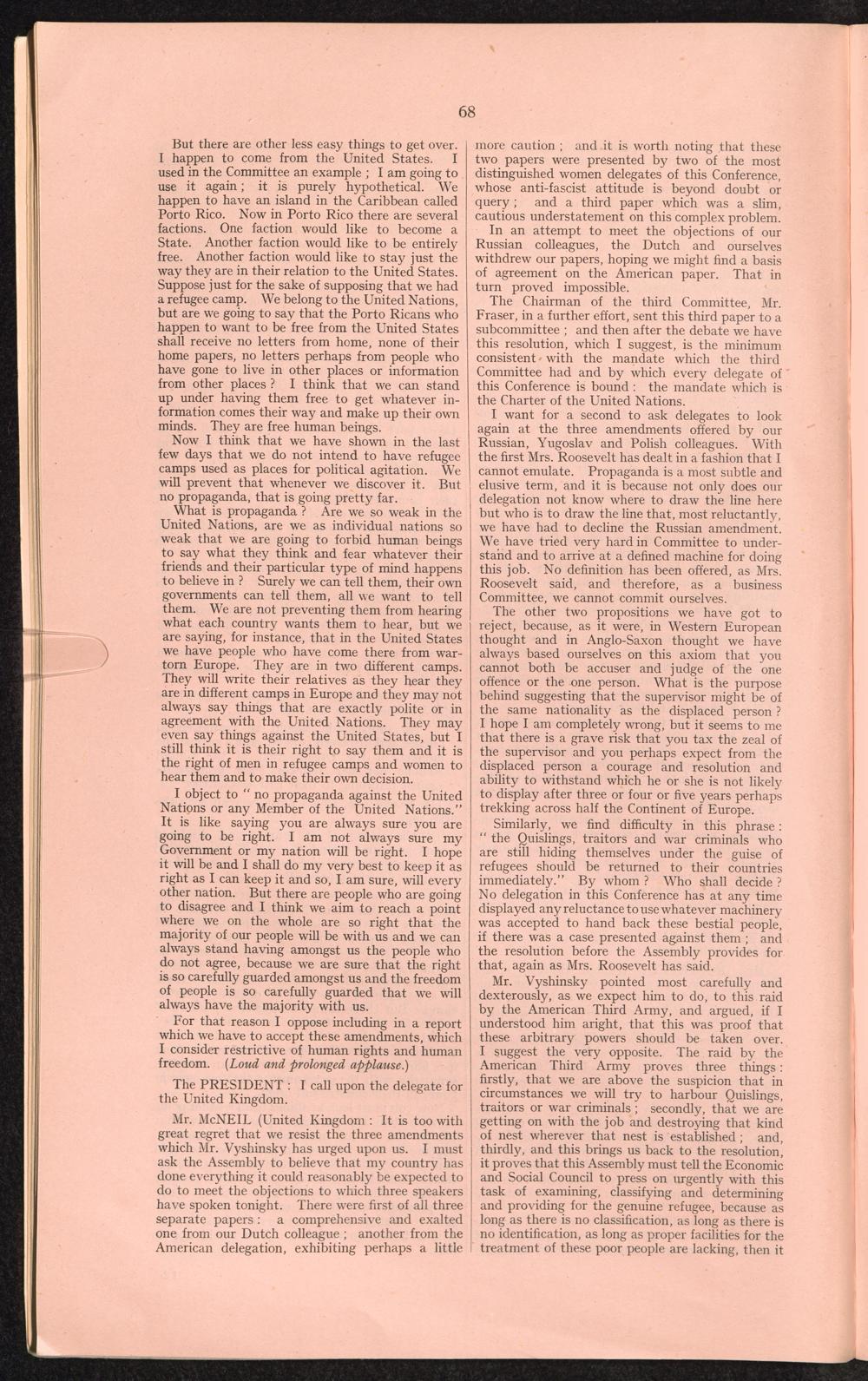 PDF 65 4. Verbatim records of the discussion which took place in the General Assembly on the report of the third Committee concerning the question of refugees.