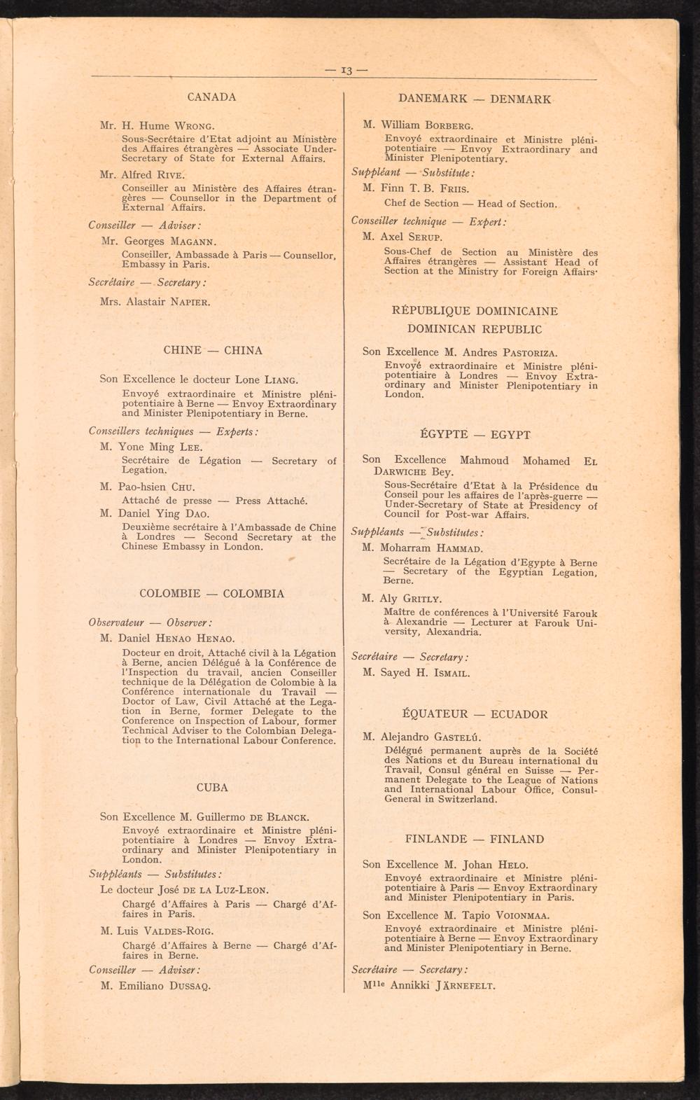Records of the twentieth (conclusion) and twenty-first ordinary sessions of the ... List of Members of Delegations