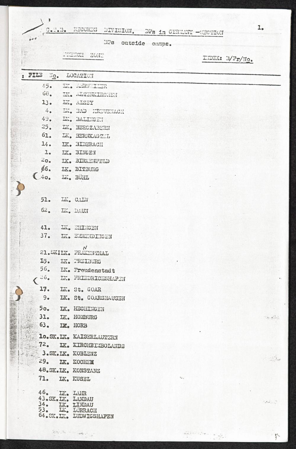 Location of UNRRA and IRO Teams French Zone: DPs outside camps.