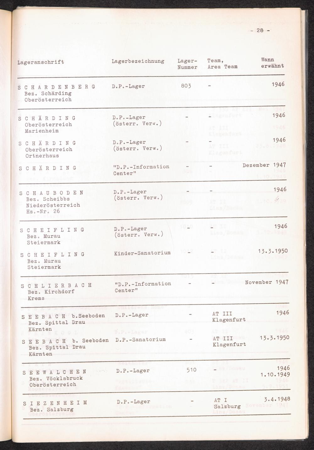 Alphabetisches Verzeichnis der DP-Lager in Österreich / International Tracing Service