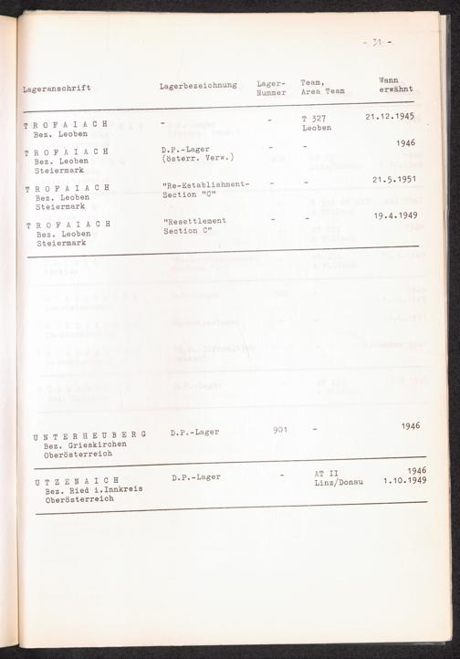 Alphabetisches Verzeichnis der DP-Lager in Österreich / International Tracing Service