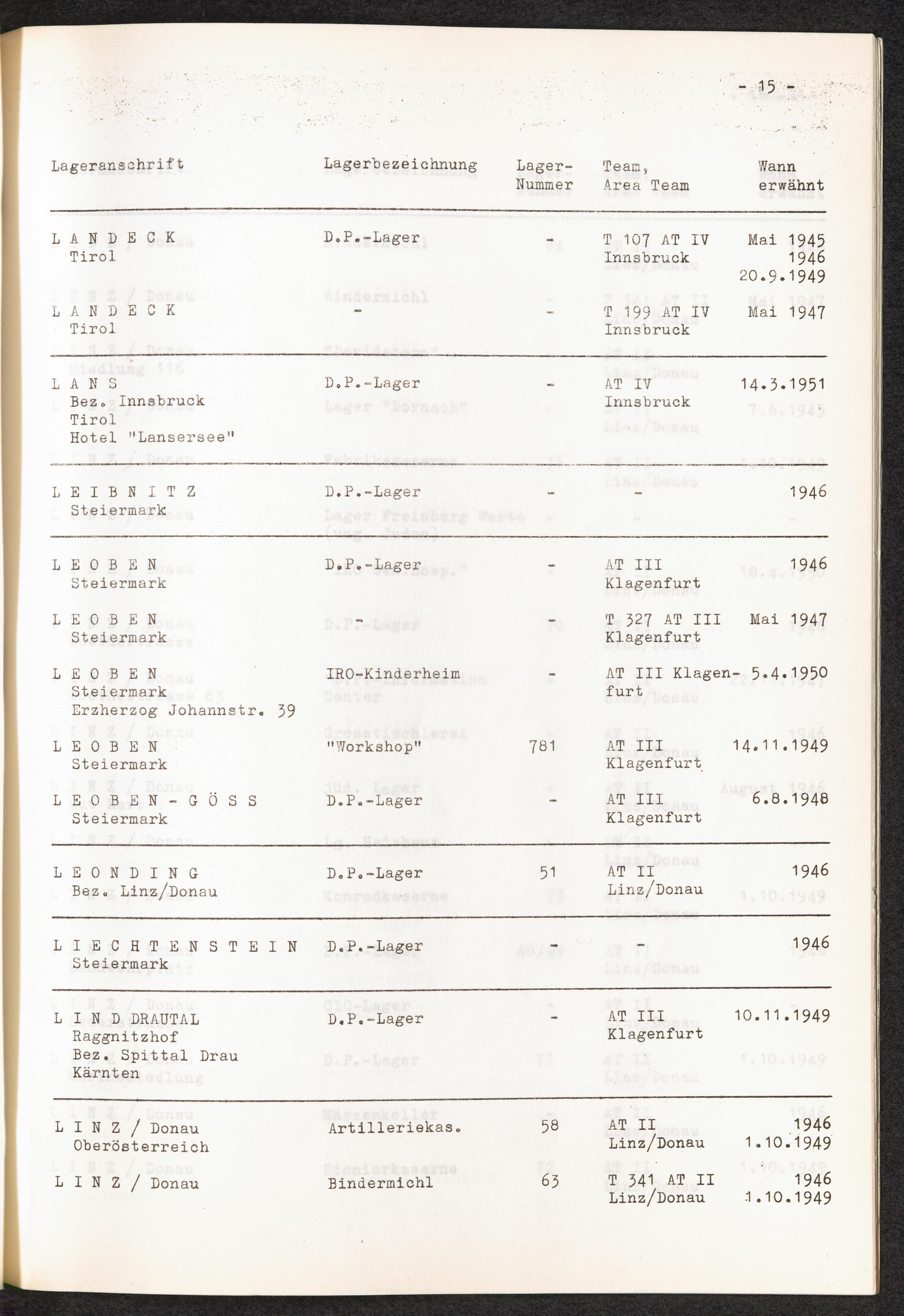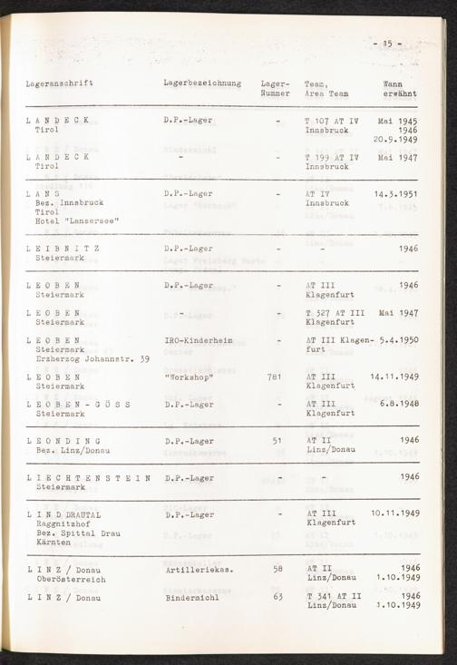 Verzeichnis der DP-Lager in Österreich / International Tracing Service