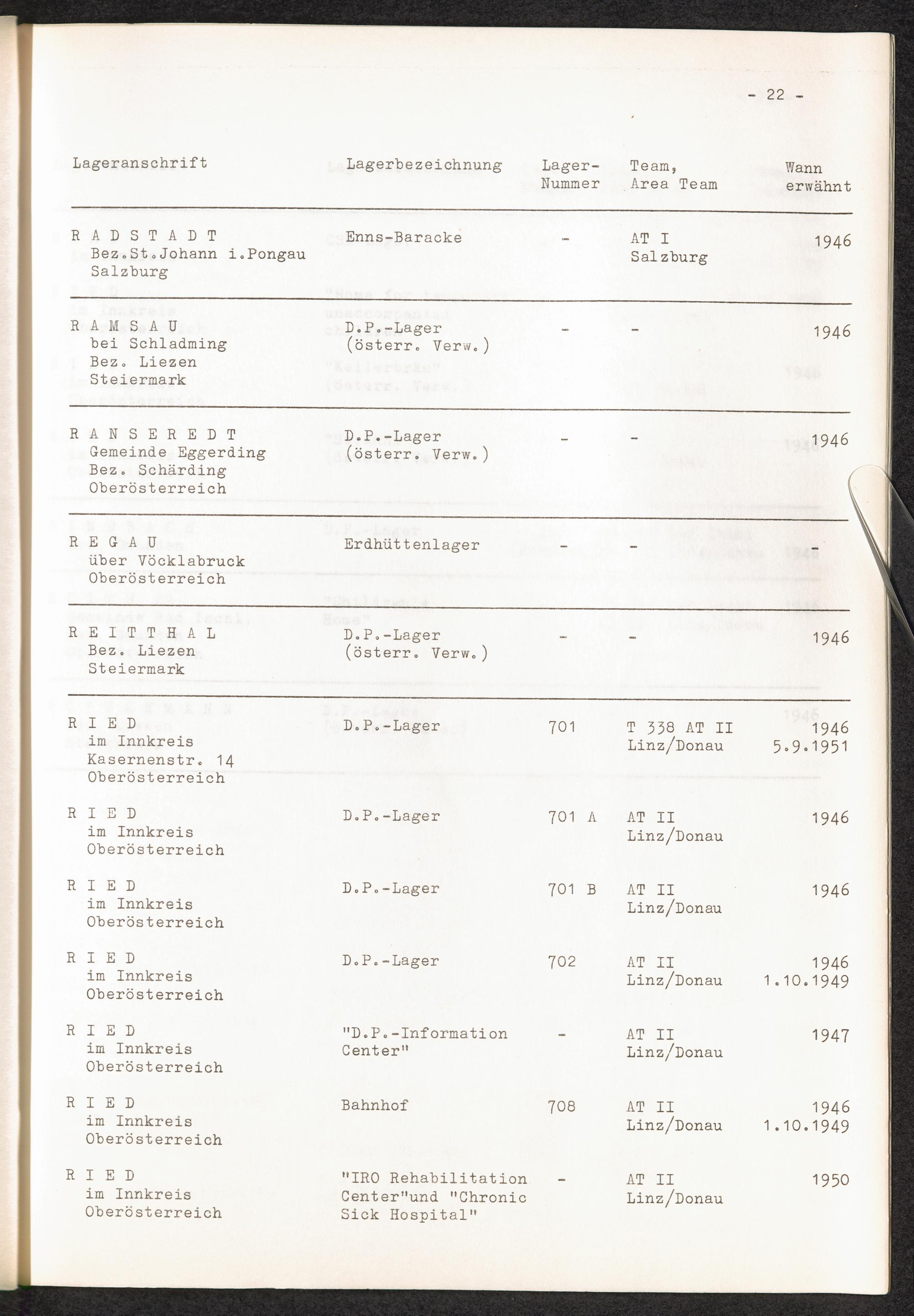 Verzeichnis der DP-Lager in Österreich / International Tracing Service