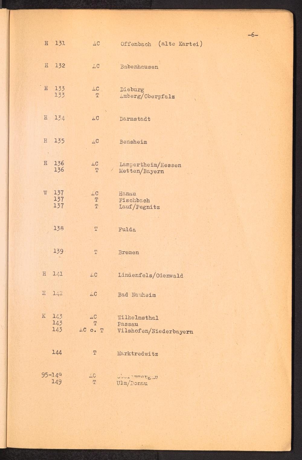 Nummern-Verzeichnis der DP-Lager Deutschland U.S.-Zone