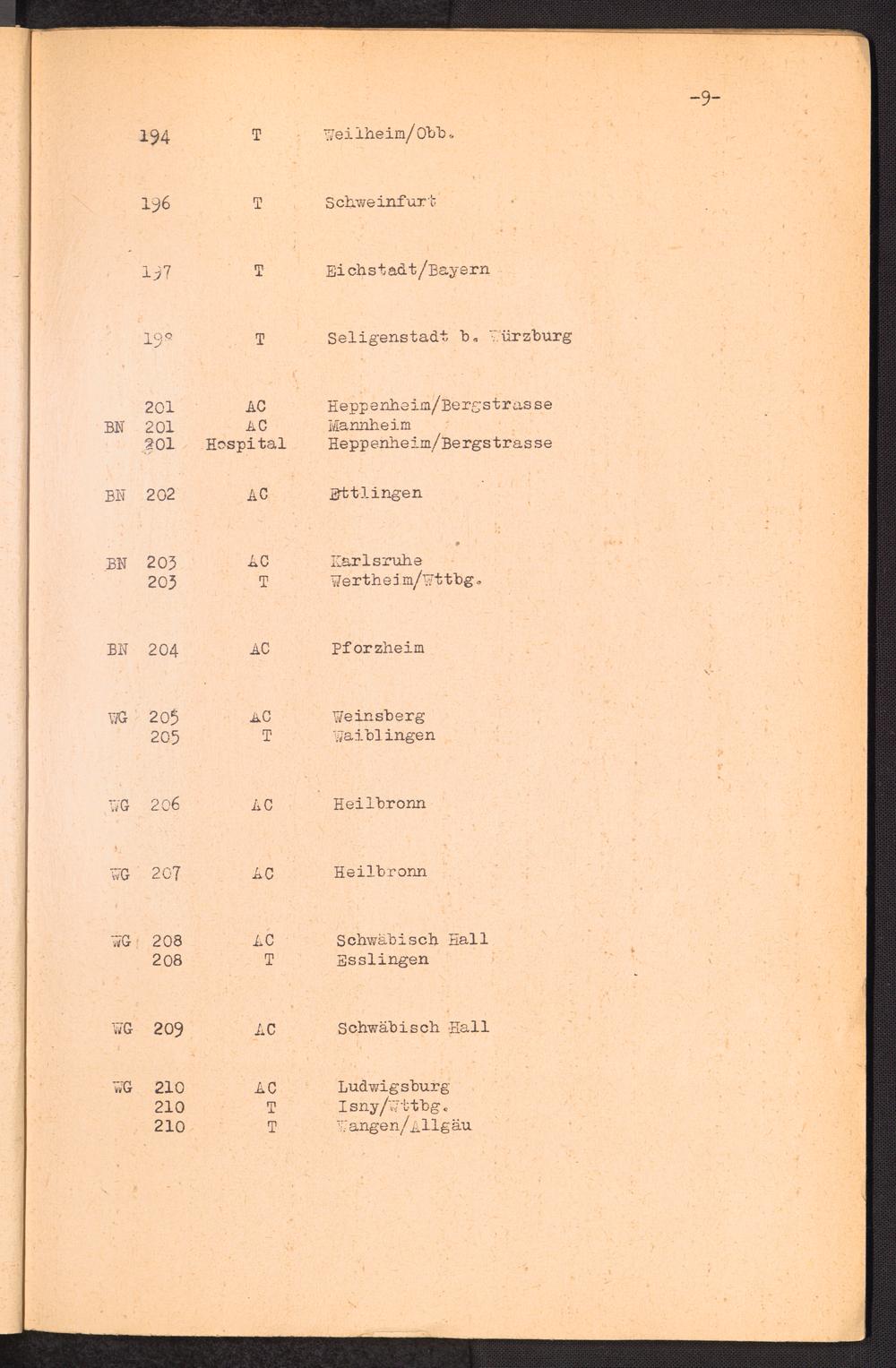 Nummern-Verzeichnis der DP-Lager Deutschland U.S.-Zone