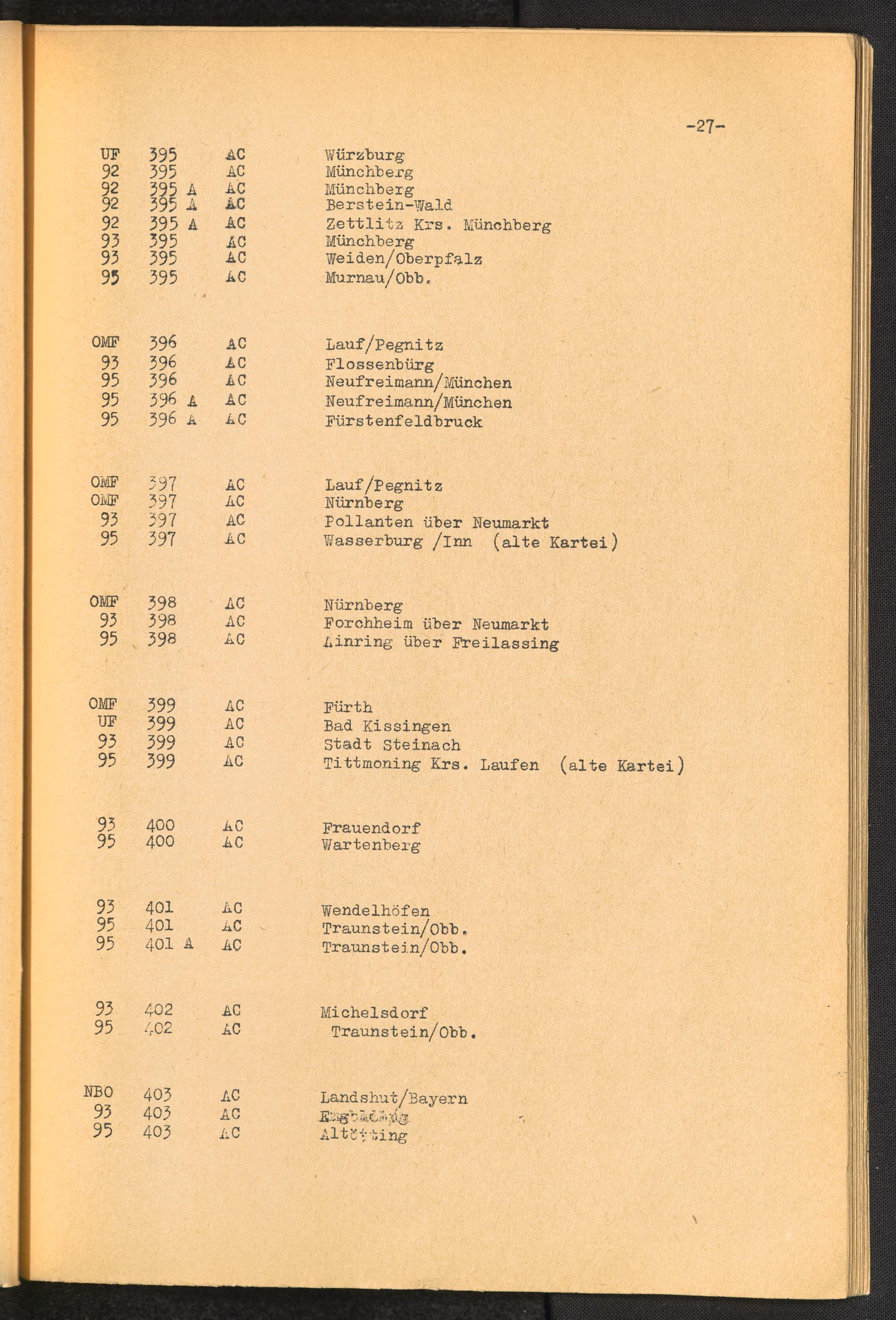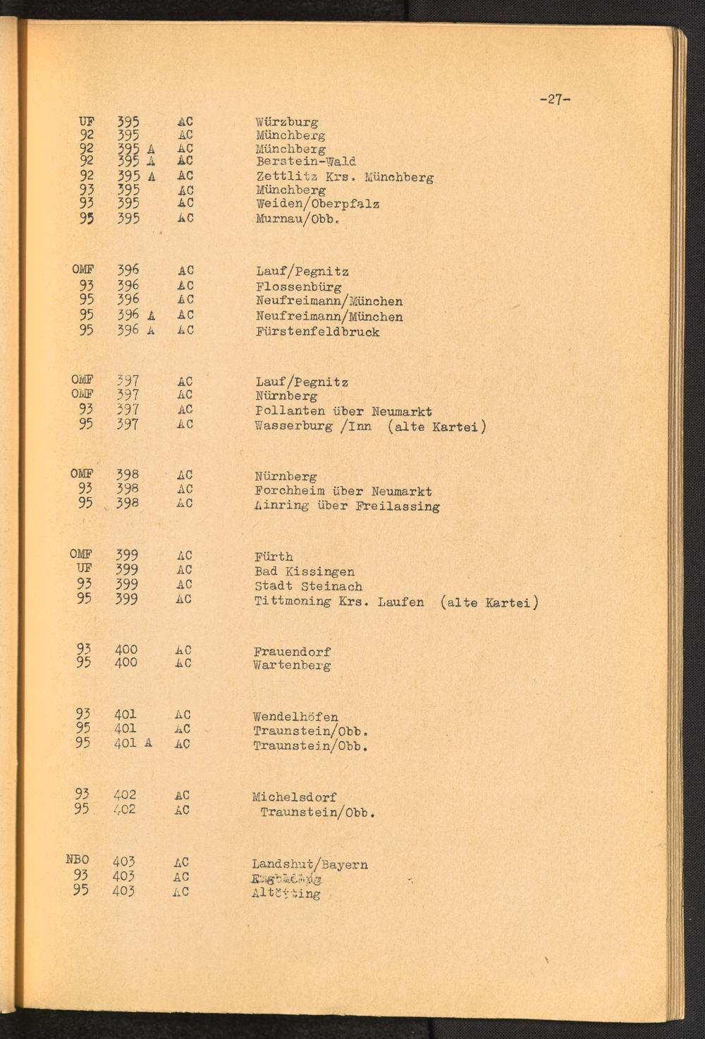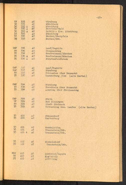 Nummern-Verzeichnis der DP-Lager Deutschland U.S.-Zone