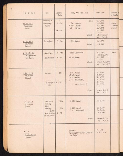 Alphabetisches Verzeichnis der DP-Lager in der US-Zone DeutschlandsAlphabetical Register of DP-Camps in US-Zone of Germany