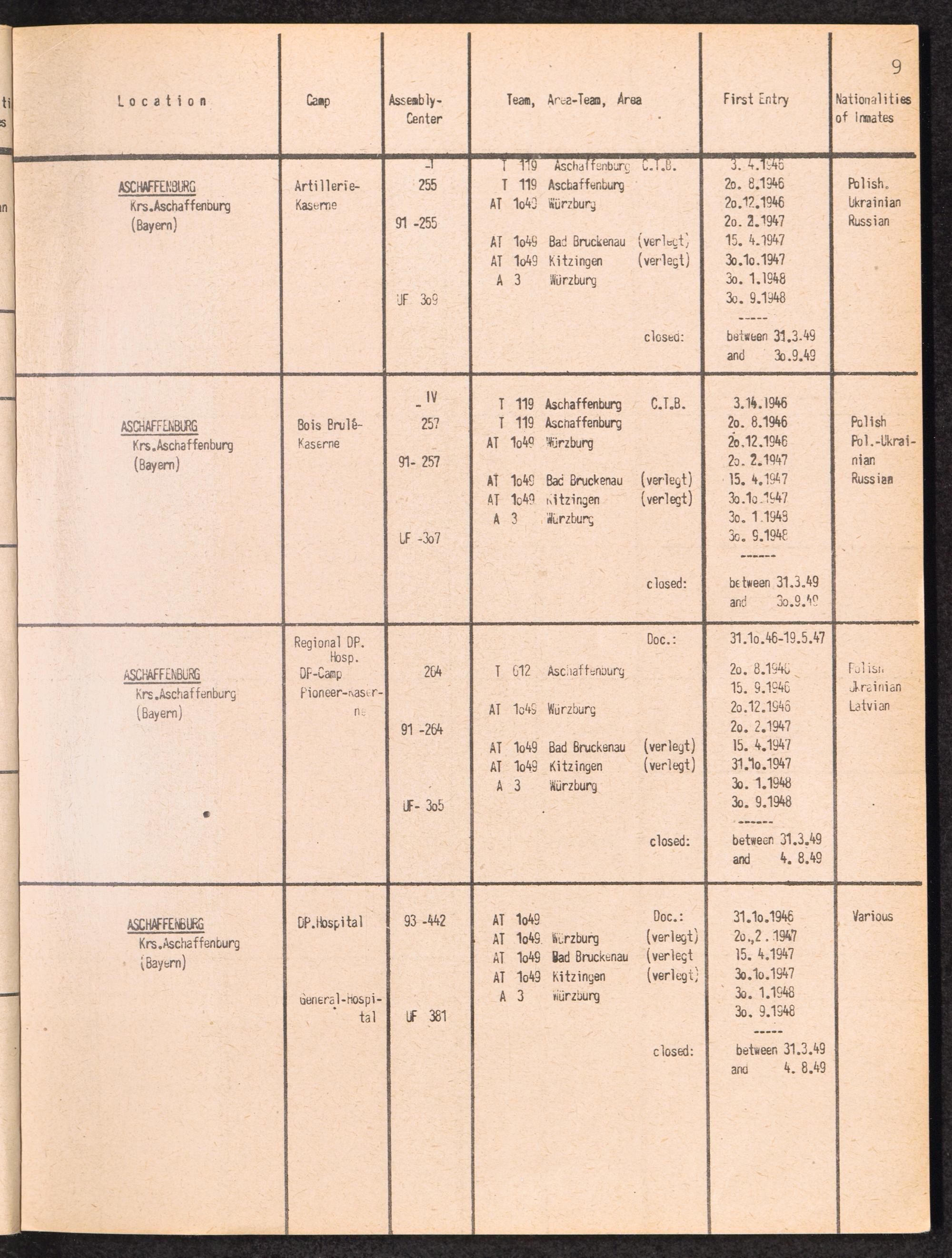 Alphabetisches Verzeichnis der DP-Lager in der US-Zone DeutschlandsAlphabetical Register of DP-Camps in US-Zone of Germany