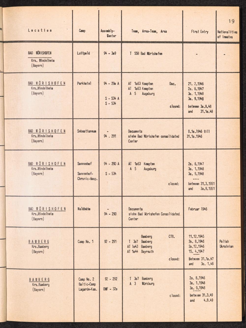 Alphabetisches Verzeichnis der DP-Lager in der US-Zone DeutschlandsAlphabetical Register of DP-Camps in US-Zone of Germany