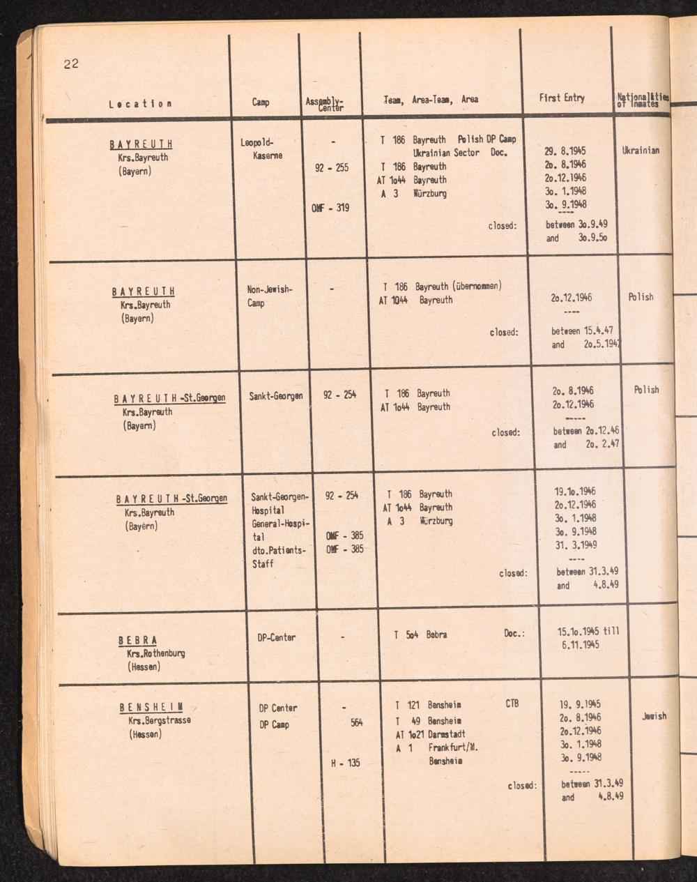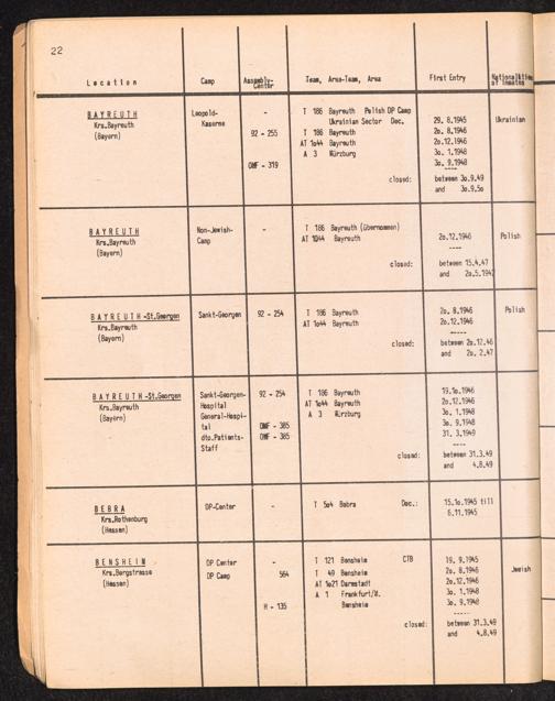 Alphabetisches Verzeichnis der DP-Lager in der US-Zone DeutschlandsAlphabetical Register of DP-Camps in US-Zone of Germany