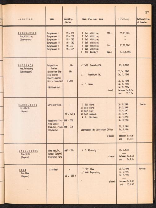 Alphabetisches Verzeichnis der DP-Lager in der US-Zone DeutschlandsAlphabetical Register of DP-Camps in US-Zone of Germany