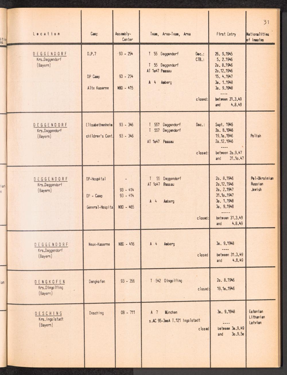 Alphabetisches Verzeichnis der DP-Lager in der US-Zone DeutschlandsAlphabetical Register of DP-Camps in US-Zone of Germany