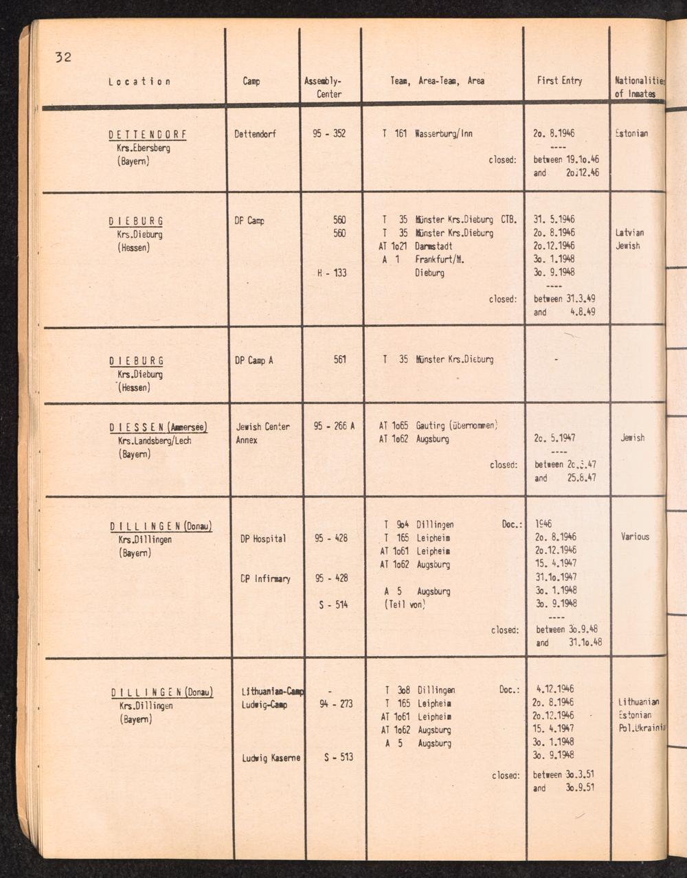 Alphabetisches Verzeichnis der DP-Lager in der US-Zone DeutschlandsAlphabetical Register of DP-Camps in US-Zone of Germany