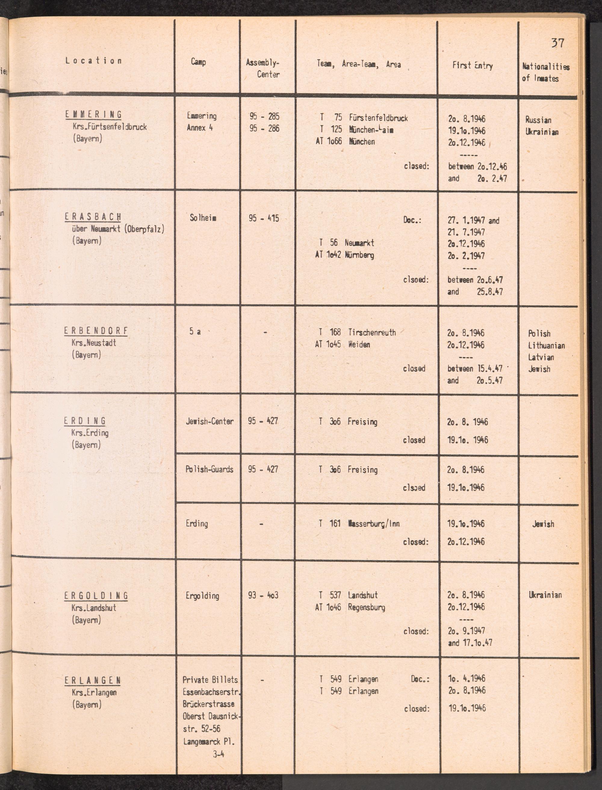 Alphabetisches Verzeichnis der DP-Lager in der US-Zone DeutschlandsAlphabetical Register of DP-Camps in US-Zone of Germany