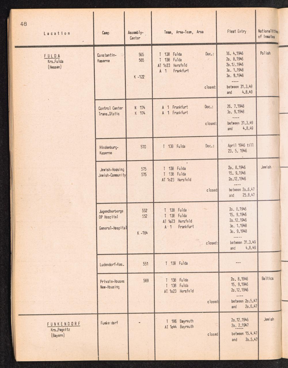 Alphabetisches Verzeichnis der DP-Lager in der US-Zone DeutschlandsAlphabetical Register of DP-Camps in US-Zone of Germany