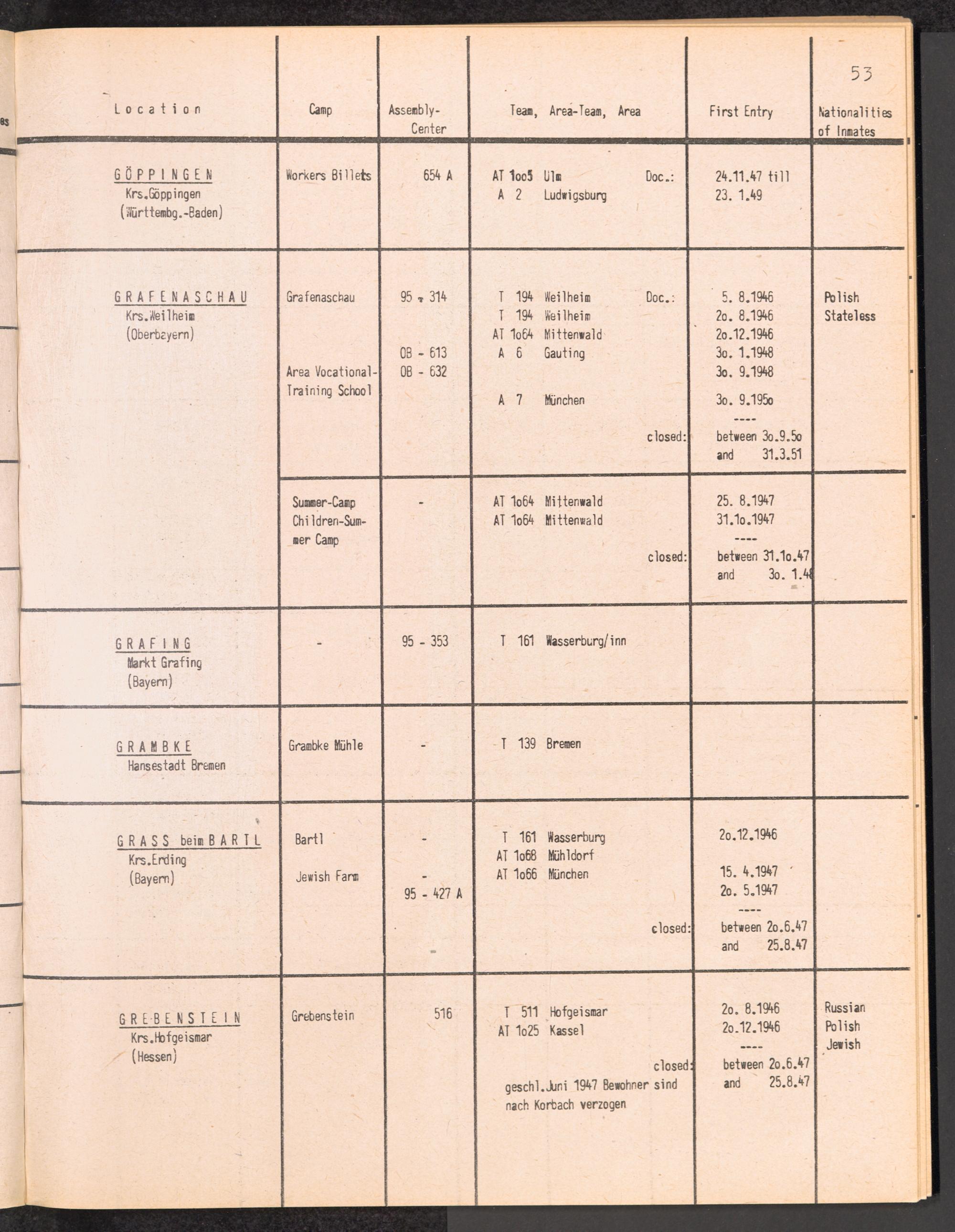 Alphabetisches Verzeichnis der DP-Lager in der US-Zone DeutschlandsAlphabetical Register of DP-Camps in US-Zone of Germany