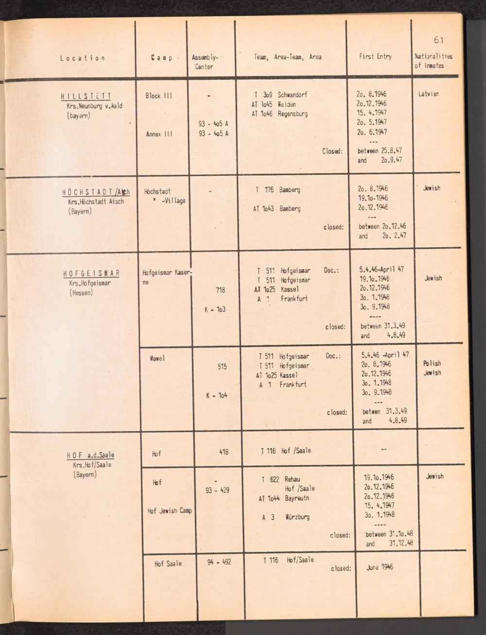 Alphabetisches Verzeichnis der DP-Lager in der US-Zone DeutschlandsAlphabetical Register of DP-Camps in US-Zone of Germany