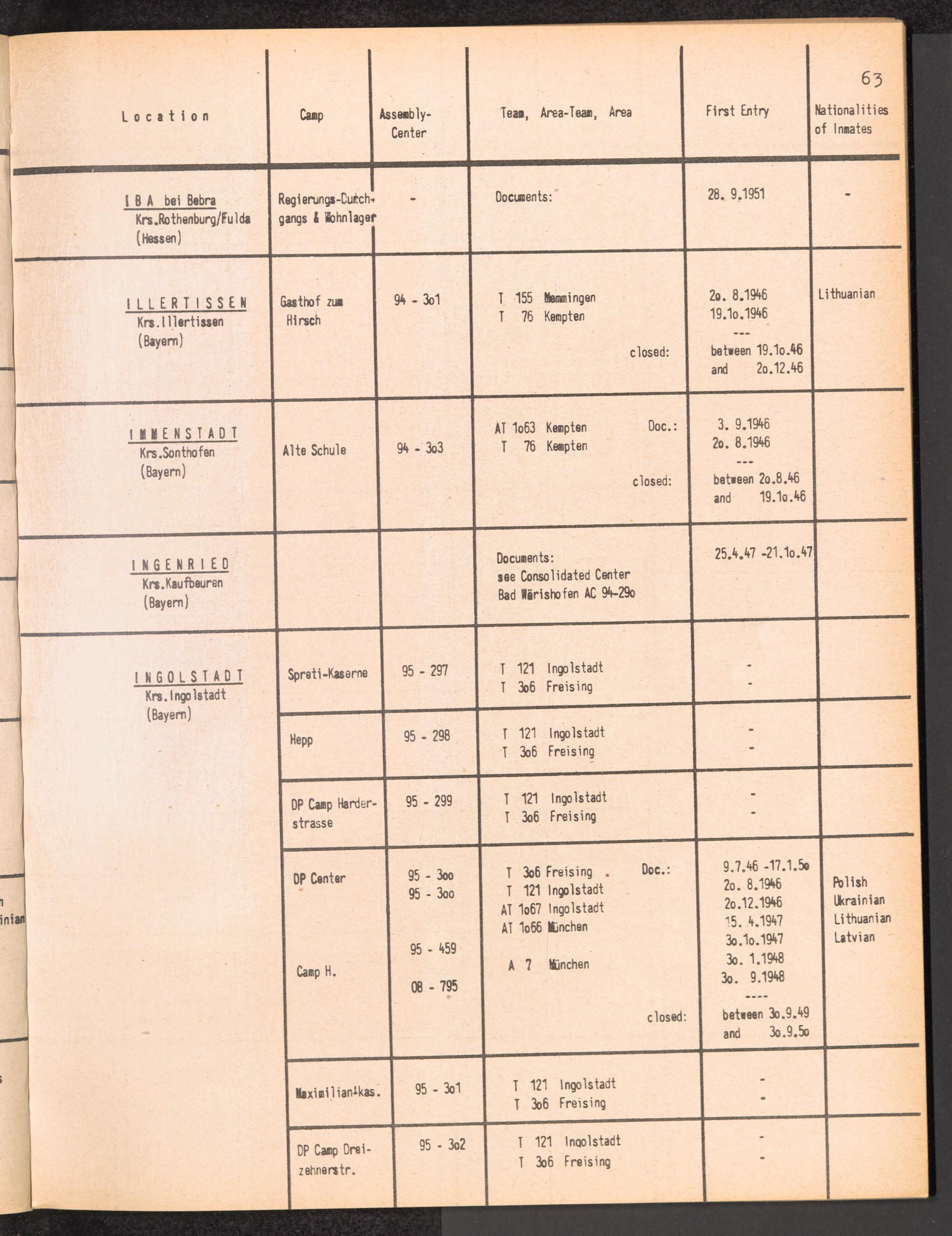 Alphabetisches Verzeichnis der DP-Lager in der US-Zone DeutschlandsAlphabetical Register of DP-Camps in US-Zone of Germany