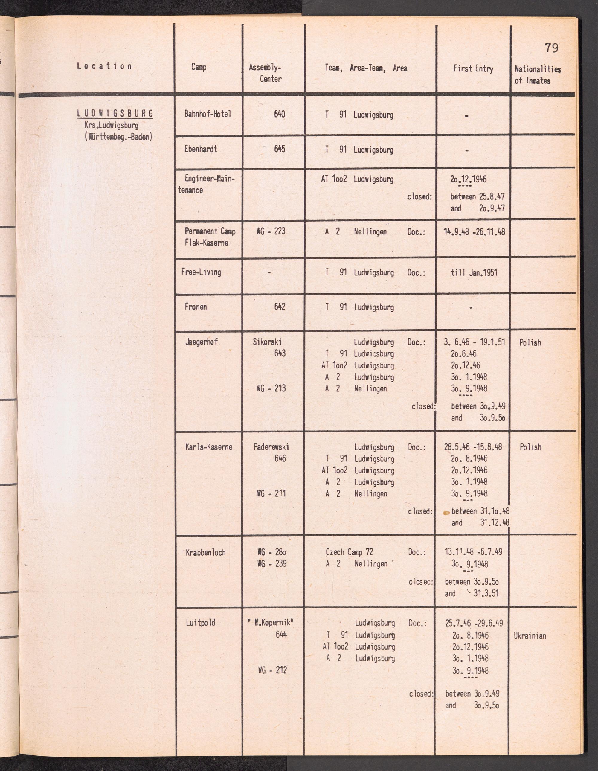 Alphabetisches Verzeichnis der DP-Lager in der US-Zone DeutschlandsAlphabetical Register of DP-Camps in US-Zone of Germany