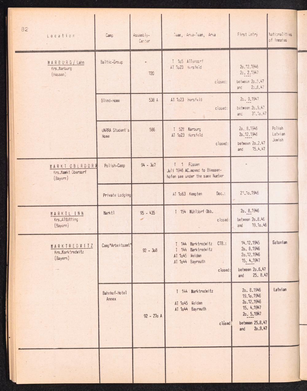 Alphabetisches Verzeichnis der DP-Lager in der US-Zone DeutschlandsAlphabetical Register of DP-Camps in US-Zone of Germany