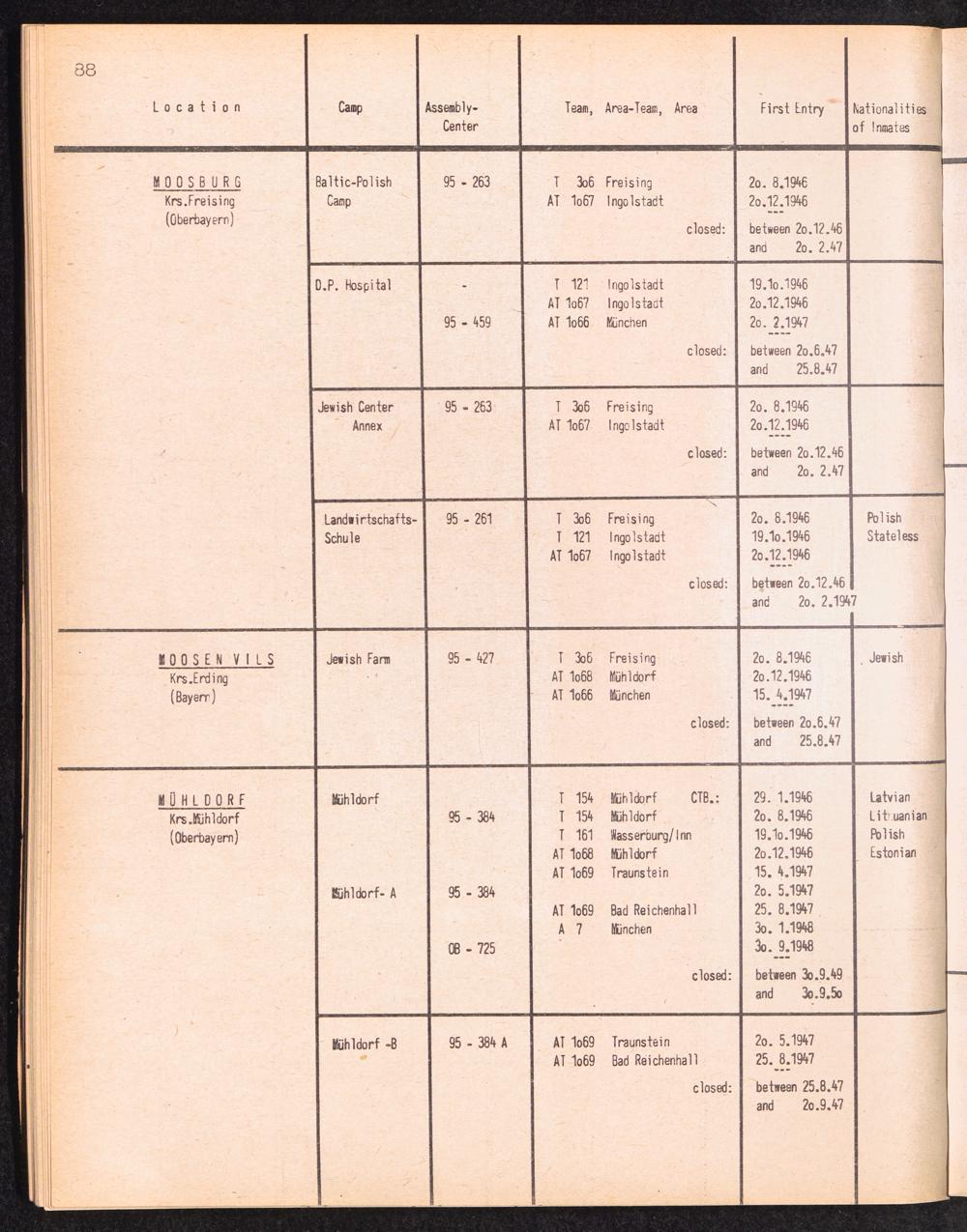 Alphabetisches Verzeichnis der DP-Lager in der US-Zone DeutschlandsAlphabetical Register of DP-Camps in US-Zone of Germany