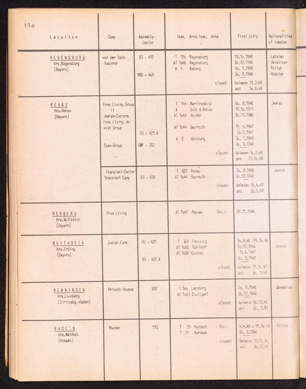 Alphabetisches Verzeichnis der DP-Lager in der US-Zone DeutschlandsAlphabetical Register of DP-Camps in US-Zone of Germany