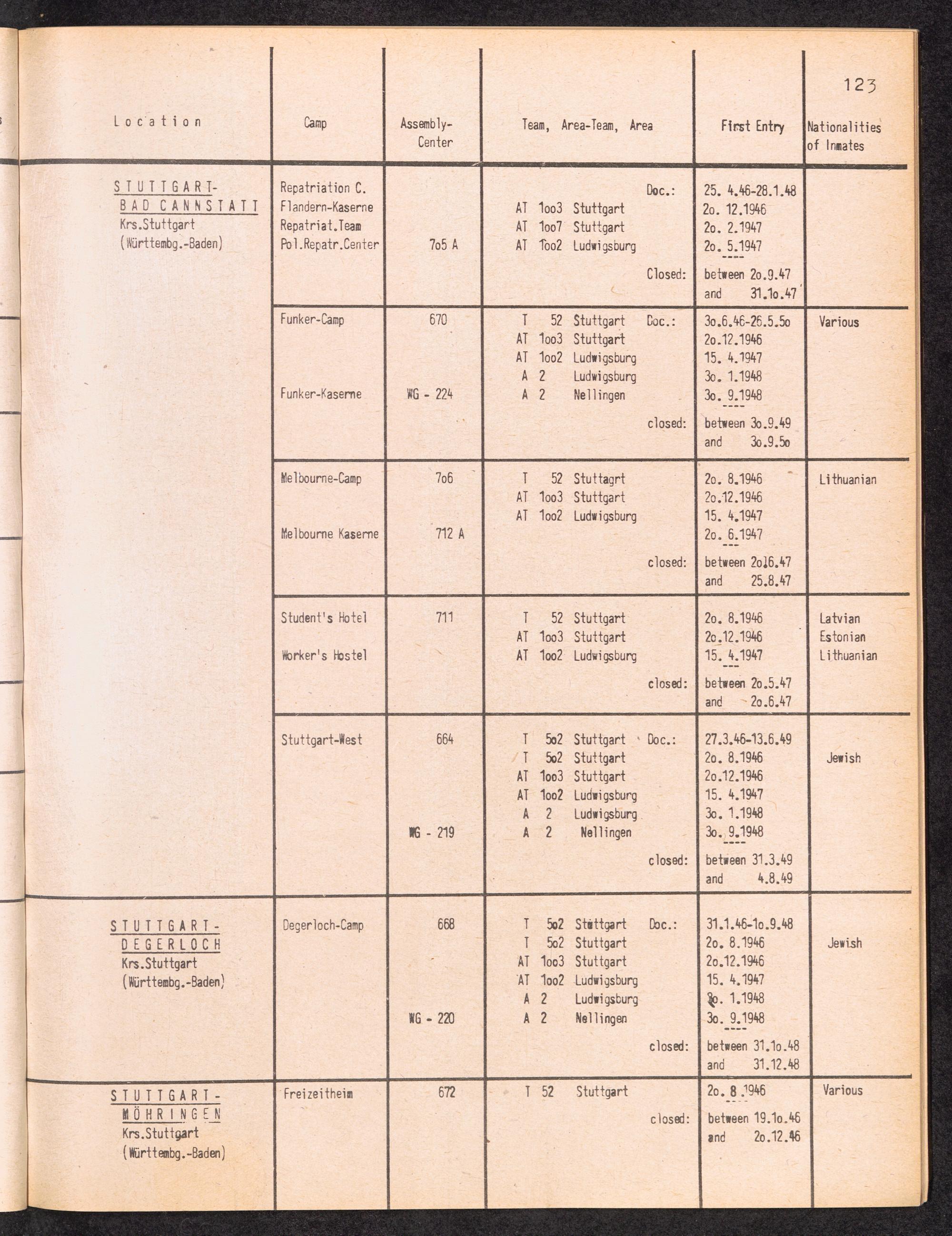 Alphabetisches Verzeichnis der DP-Lager in der US-Zone DeutschlandsAlphabetical Register of DP-Camps in US-Zone of Germany